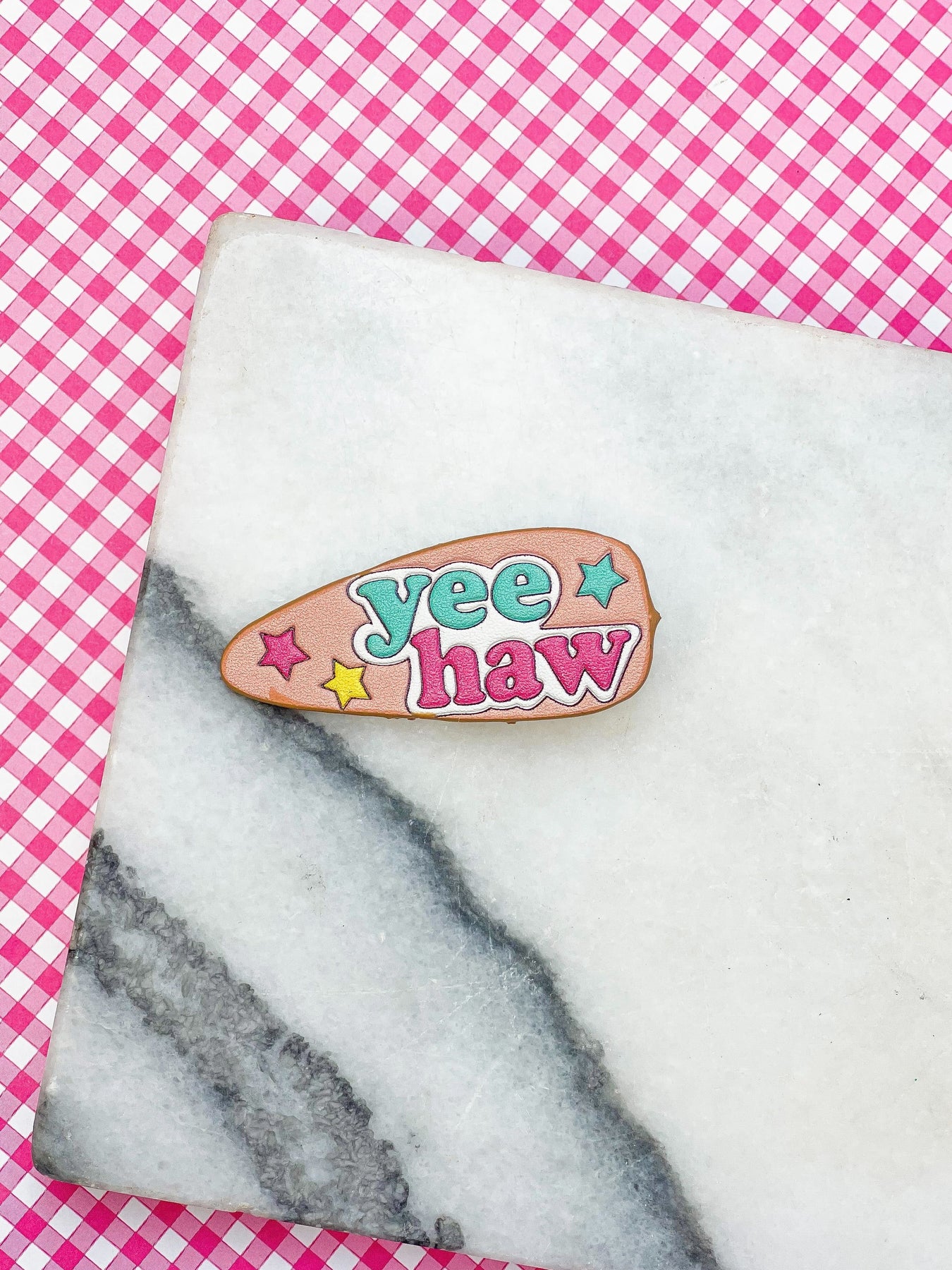Embrace western charm with our Yee-Haw Tooled Leather Hair Clip.