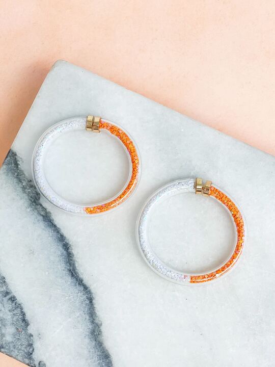 Game Day Jelly Tube Hoop Earrings - Orange & White