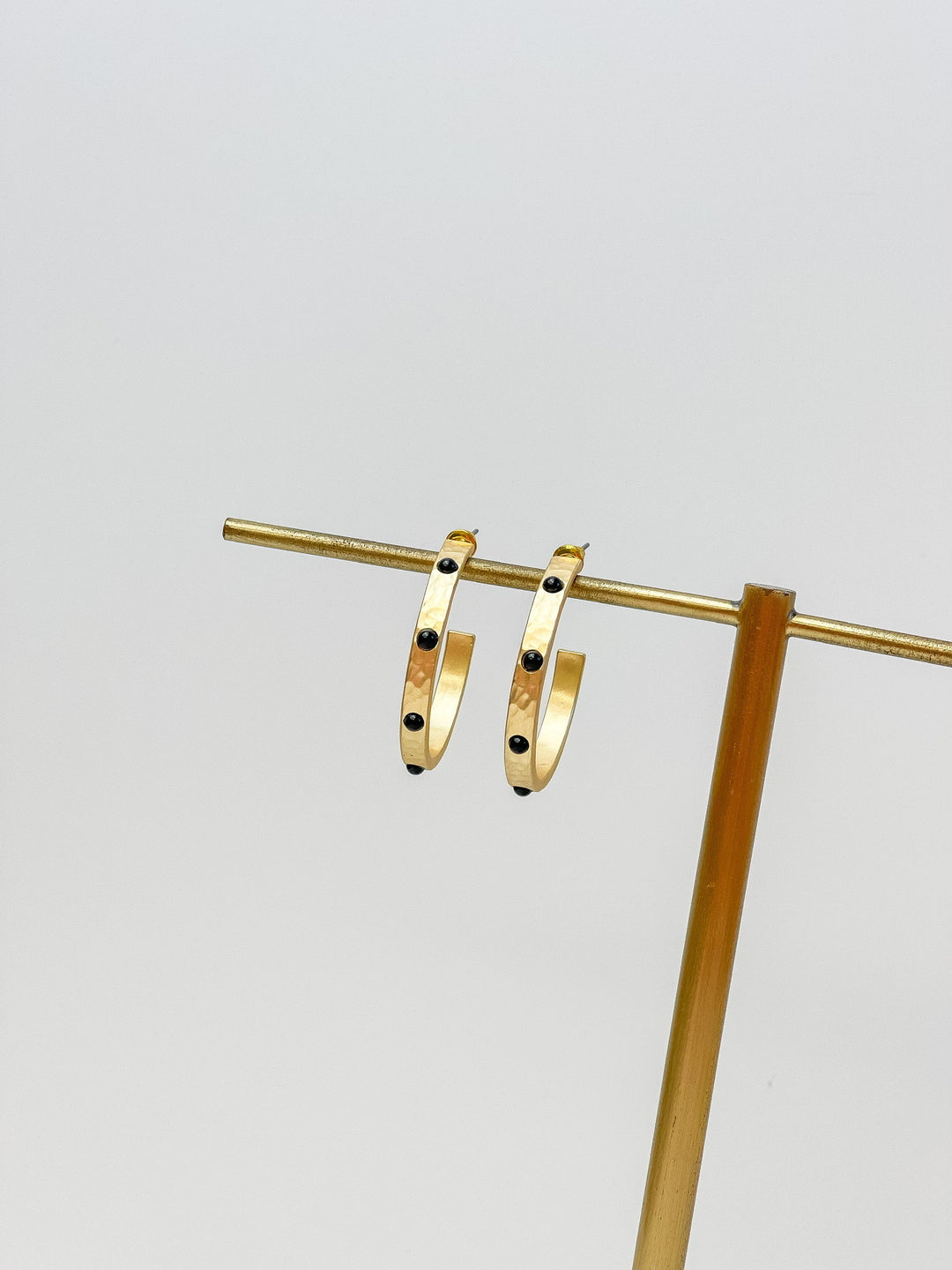 Hammered Stone Hoop Earrings - Matte Gold