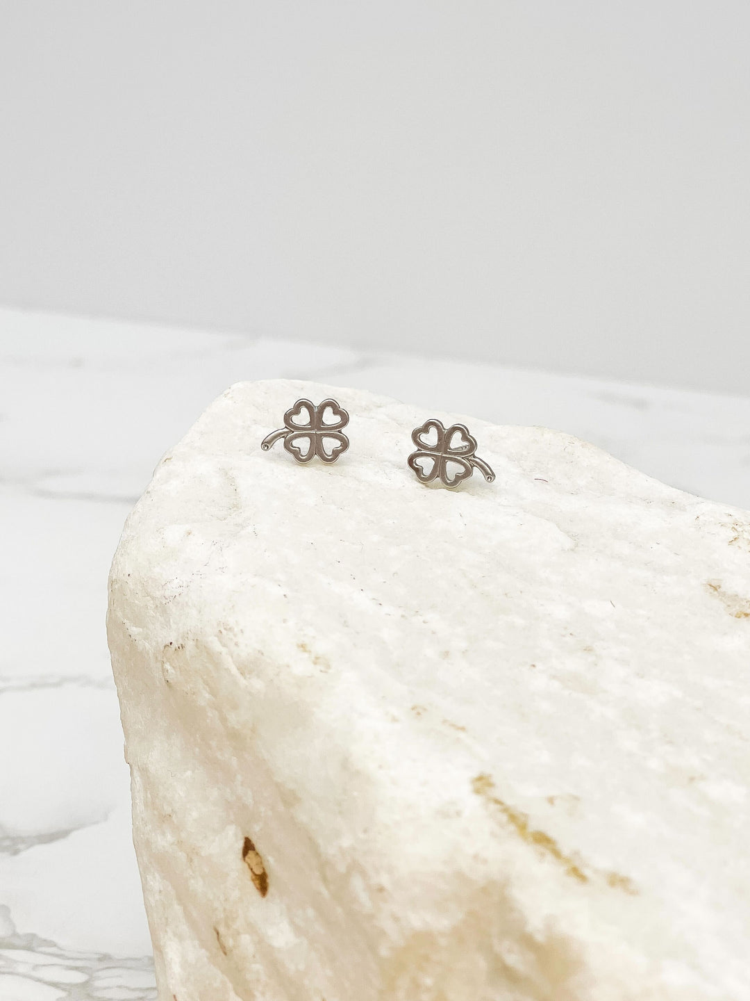 Open Heart Clover Stud Earrings - Silver