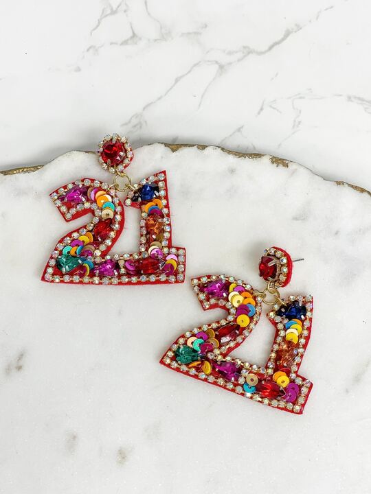 '21' Birthday Glitzy Sequin Dangle Earrings