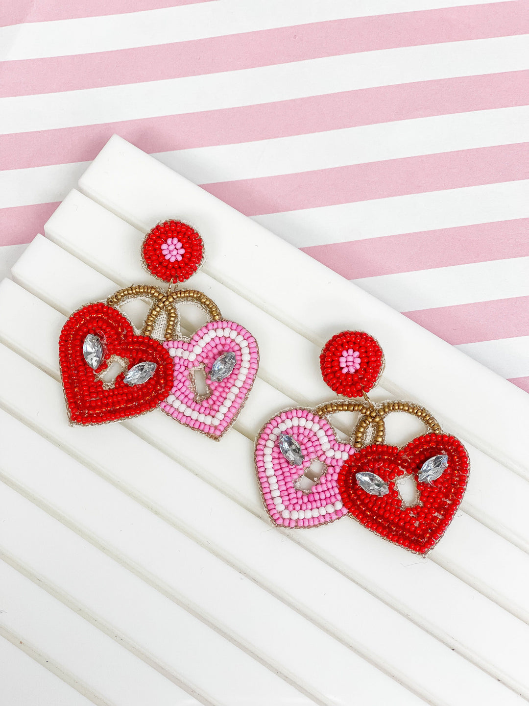 Heart Lockets Beaded Dangle Earrings