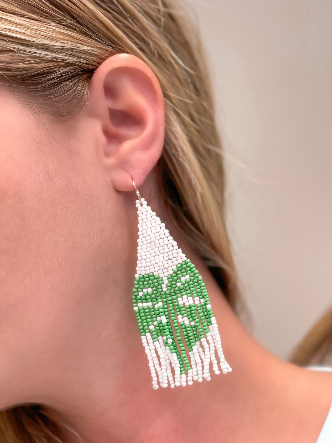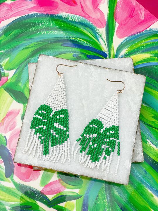Palm Leaf Fringe Beaded Dangle Earrings