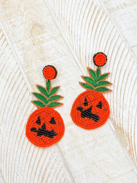 Pineapple Jack-o'-lantern Beaded Dangle Earrings