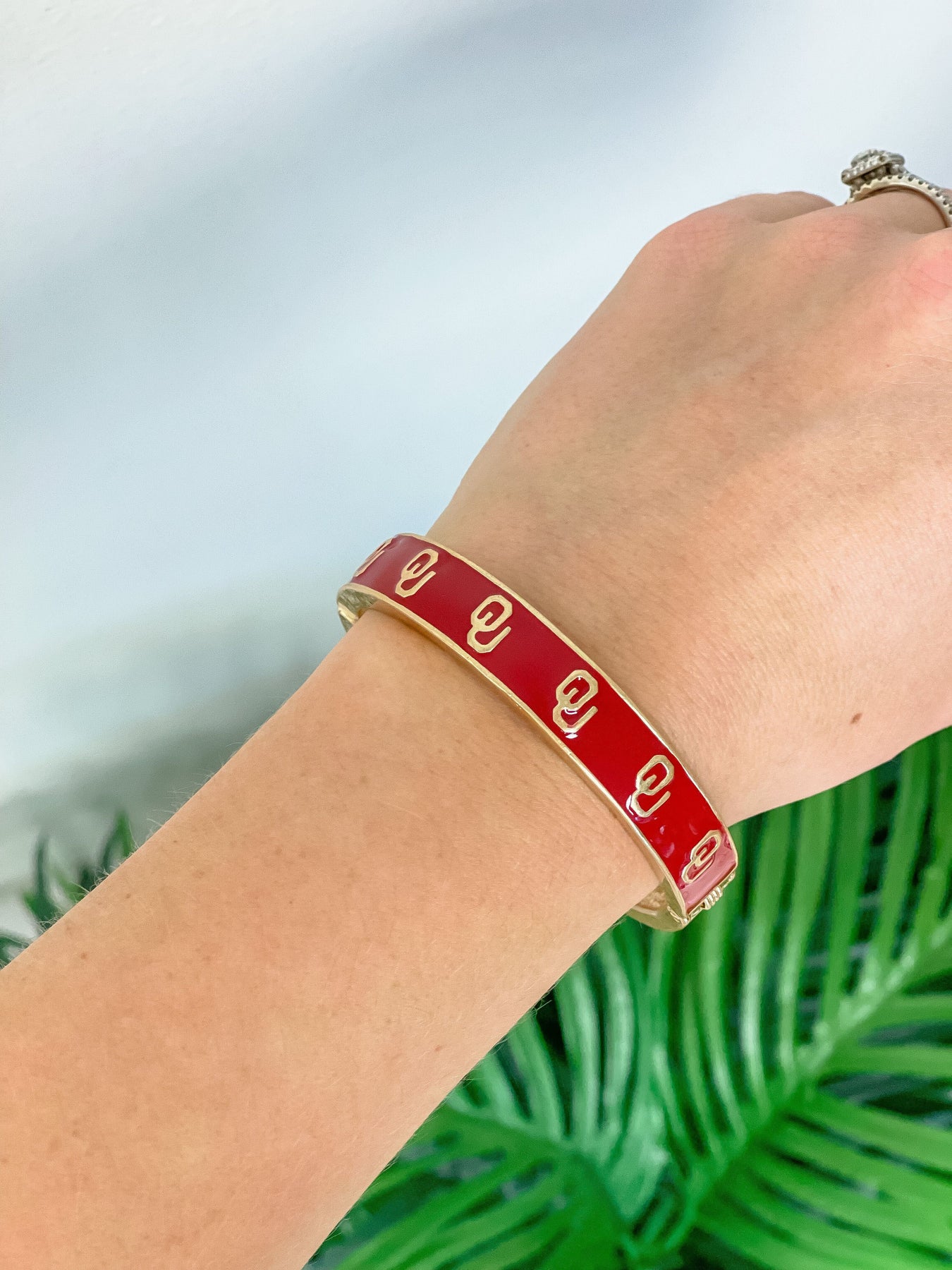 Collegiate Gold Football Hinged Bangle Bracelet - Oklahoma Red