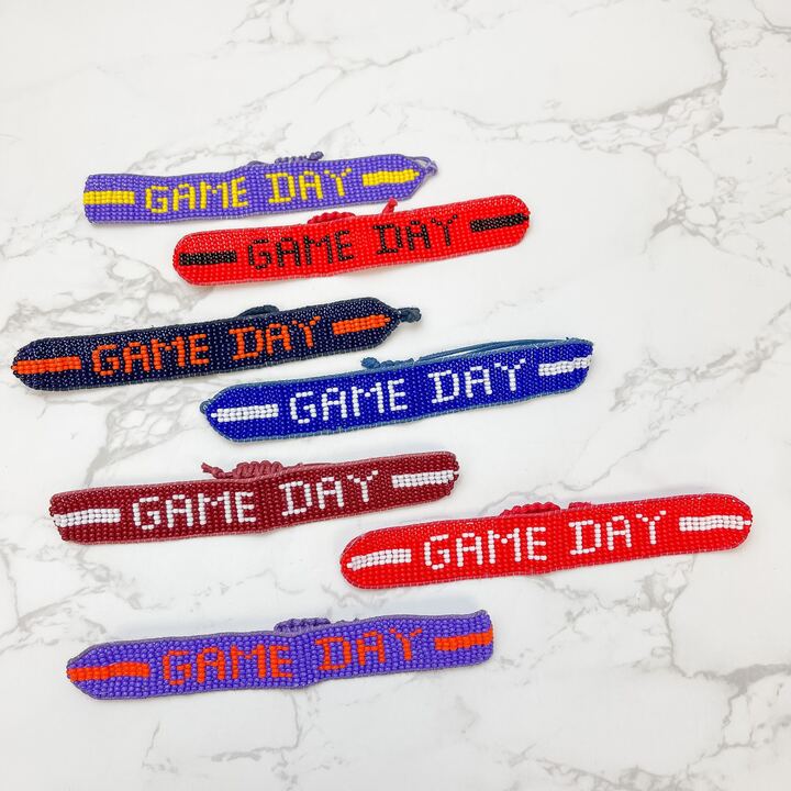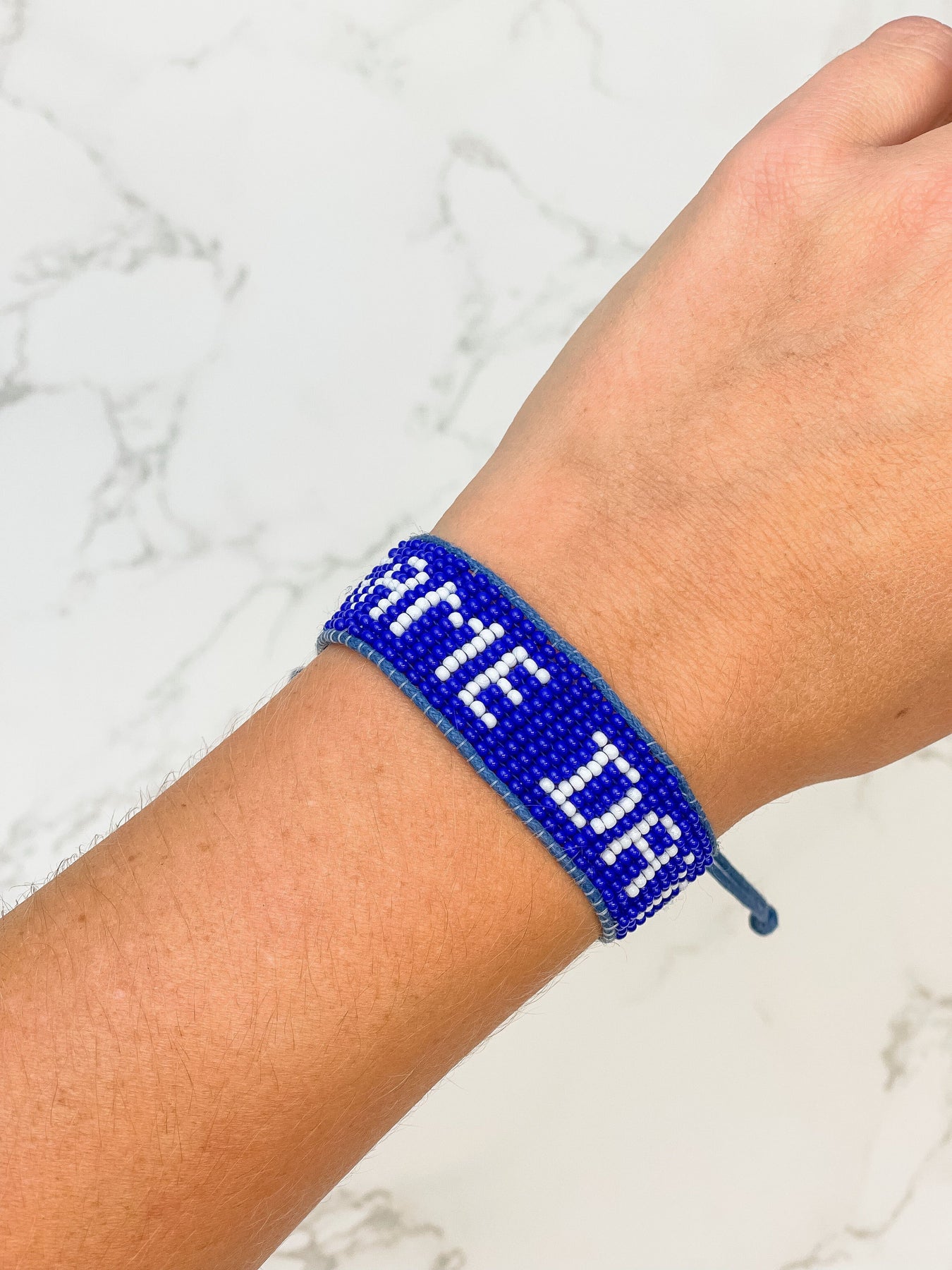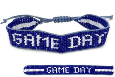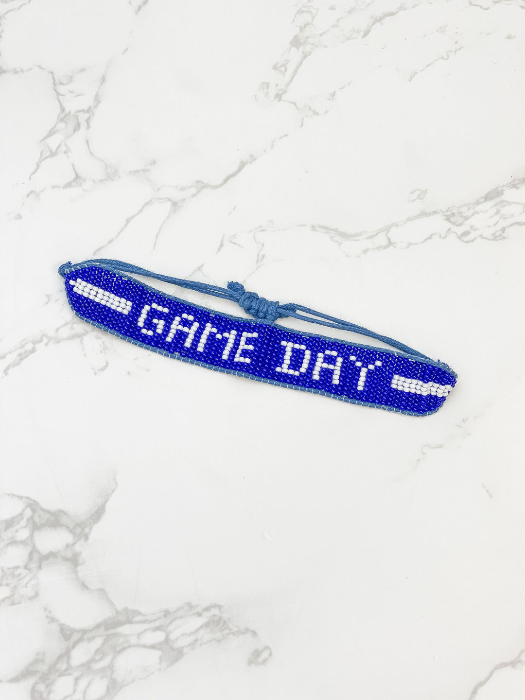'Game Day' Beaded Adjustable Bracelet - Blue & White