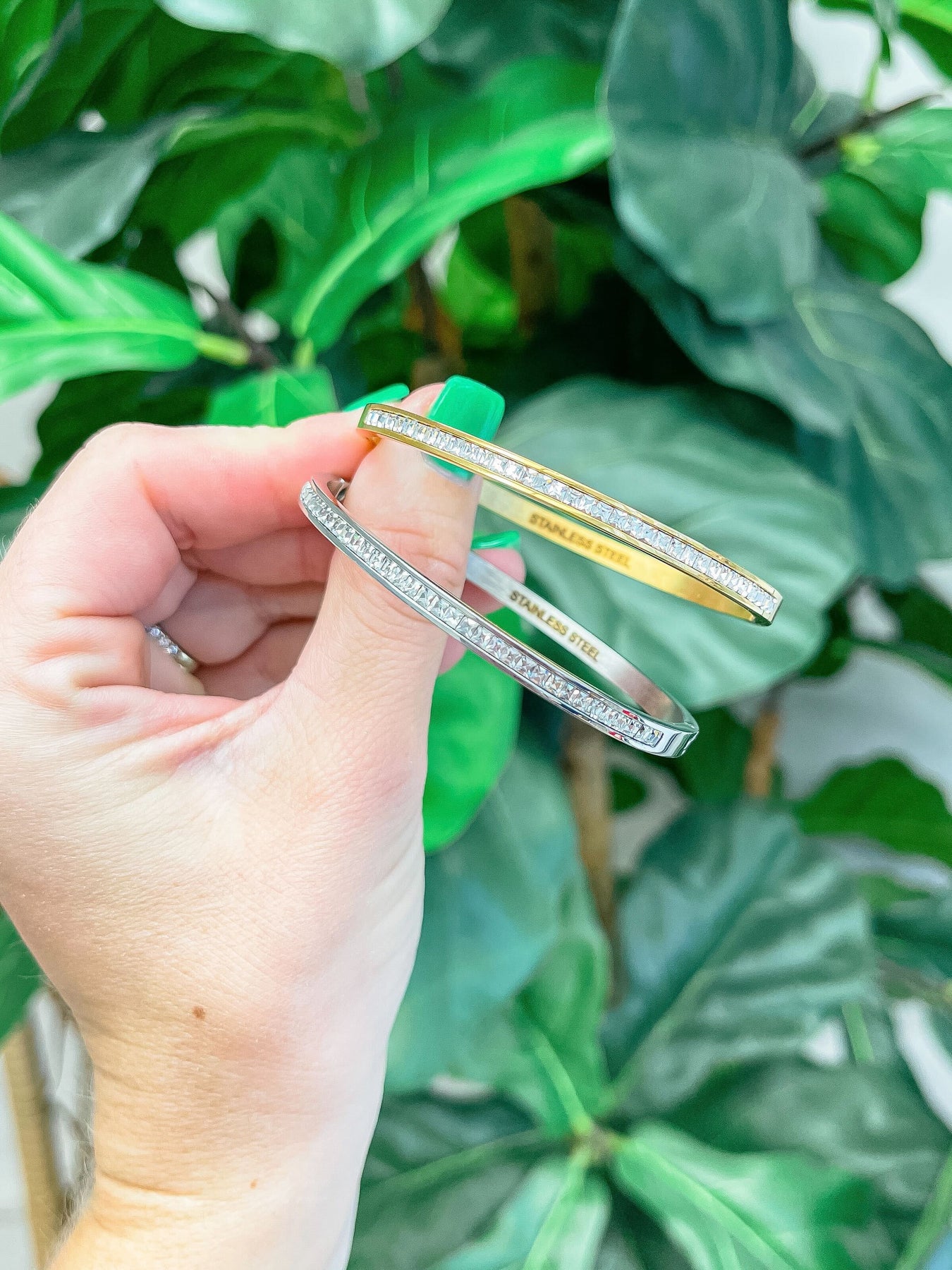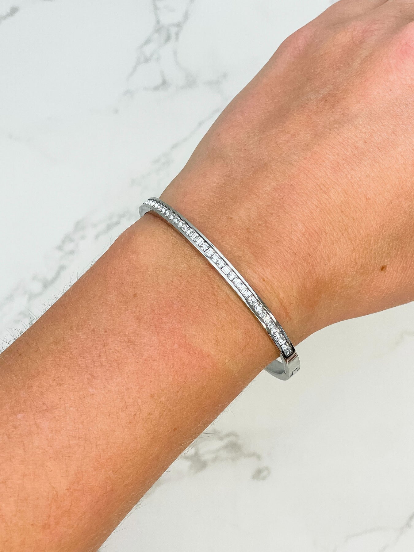 Glitzy Stainless Steel Hinge Bangle Bracelet - Silver