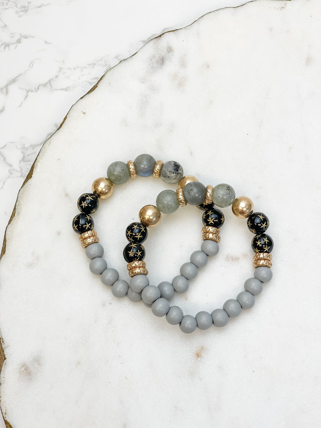 Gold Star Semi Precious Beaded Stretch Bracelet Set