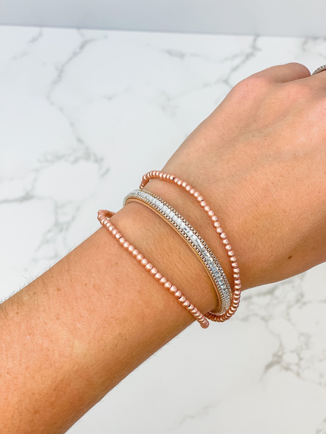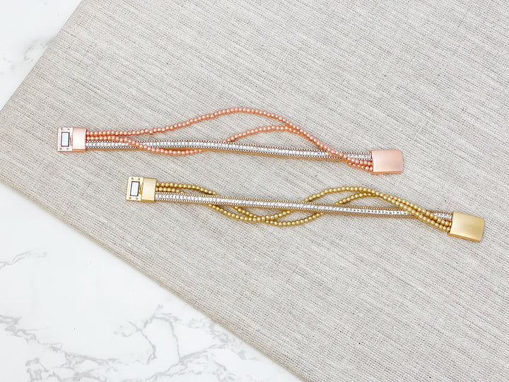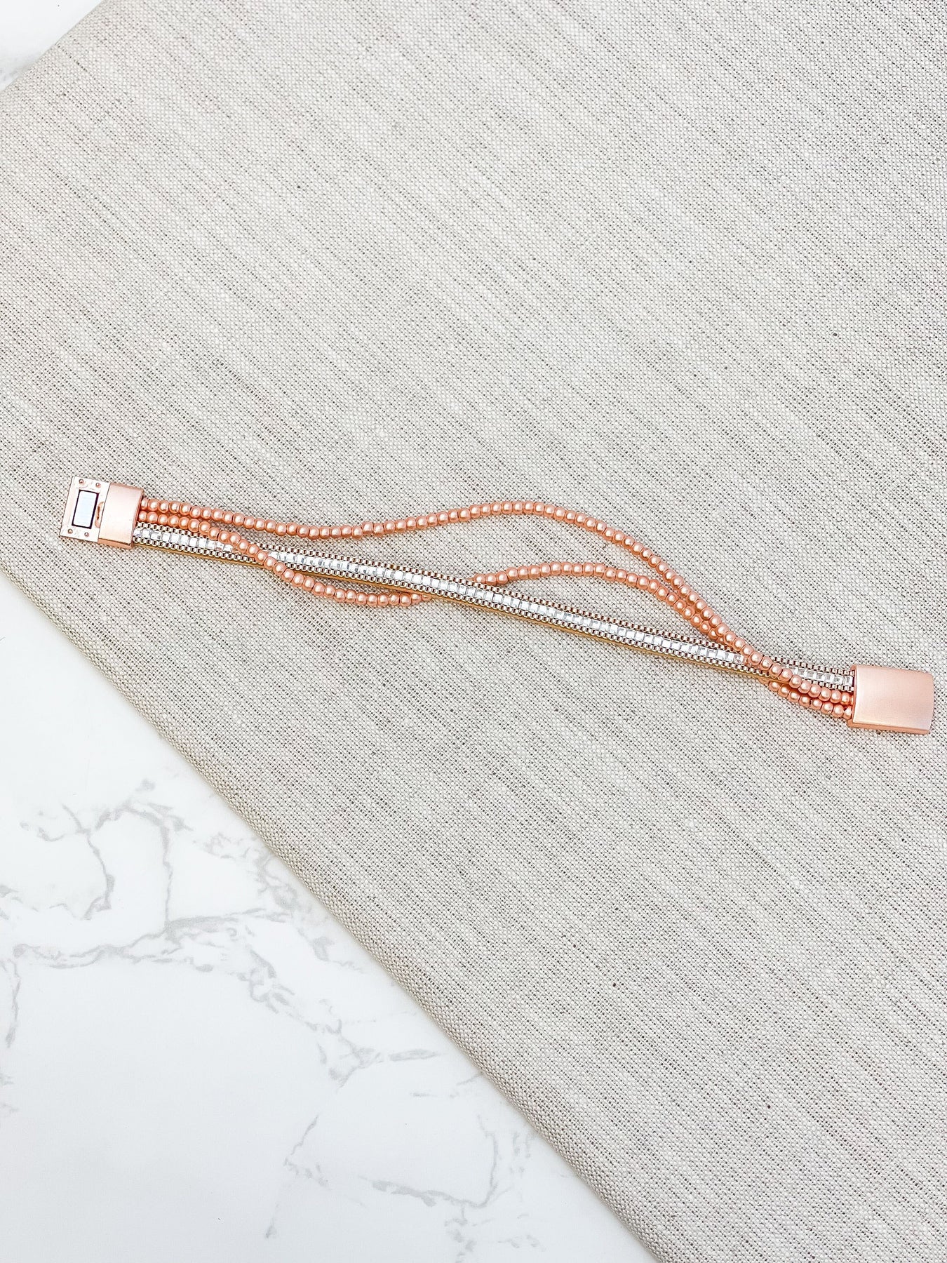 Matte Beaded Triple Strand Magnetic Bracelet - Rose Gold