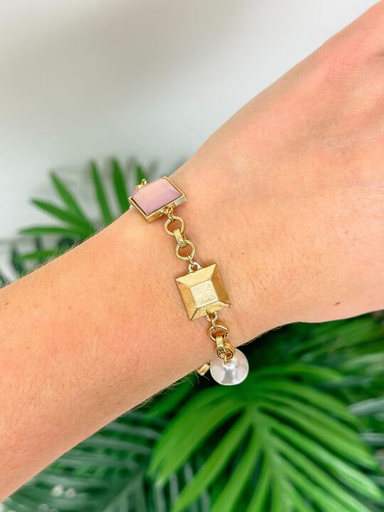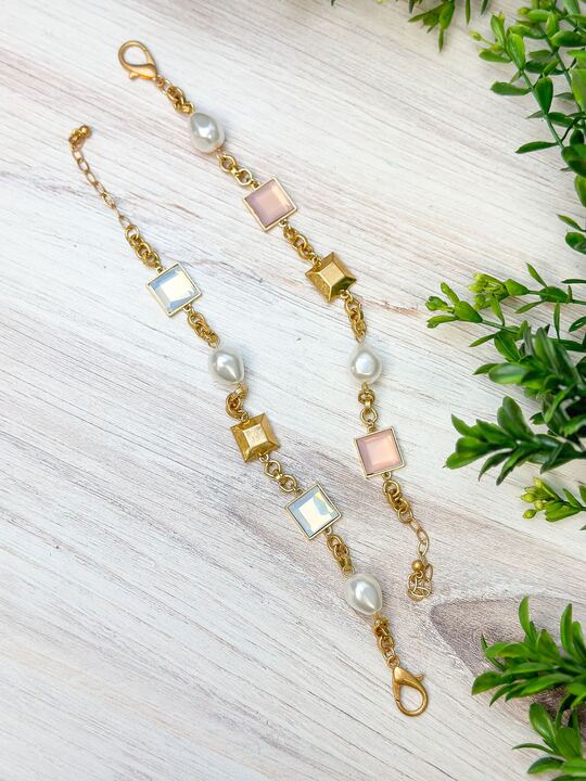 Pearl & Iridescent Stone Station Bracelet - Pink