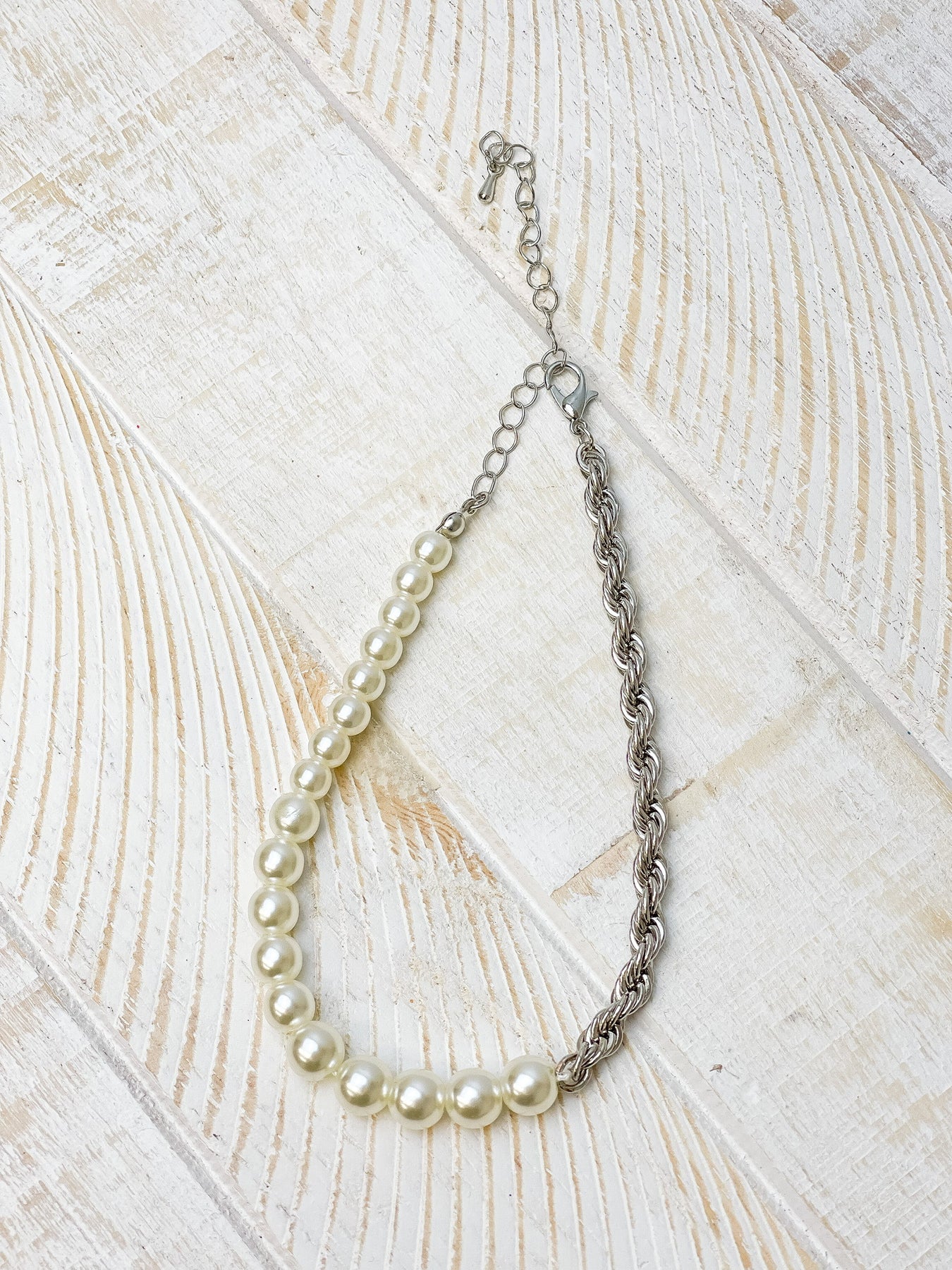 Pearl & Rope Chain Ankle Bracelet - Silver