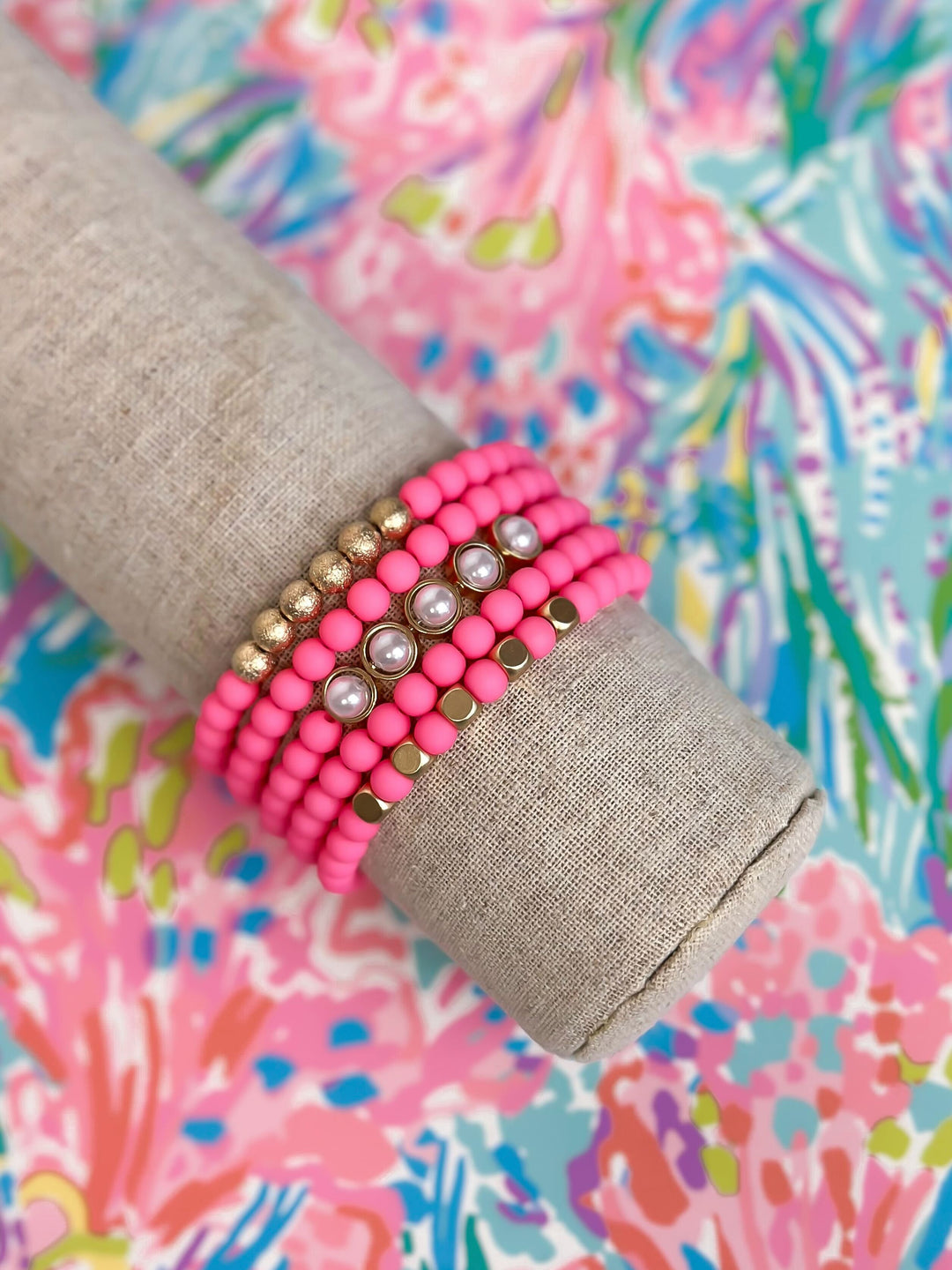 Summer Pearl Magnetic Bracelet Stack - Pink