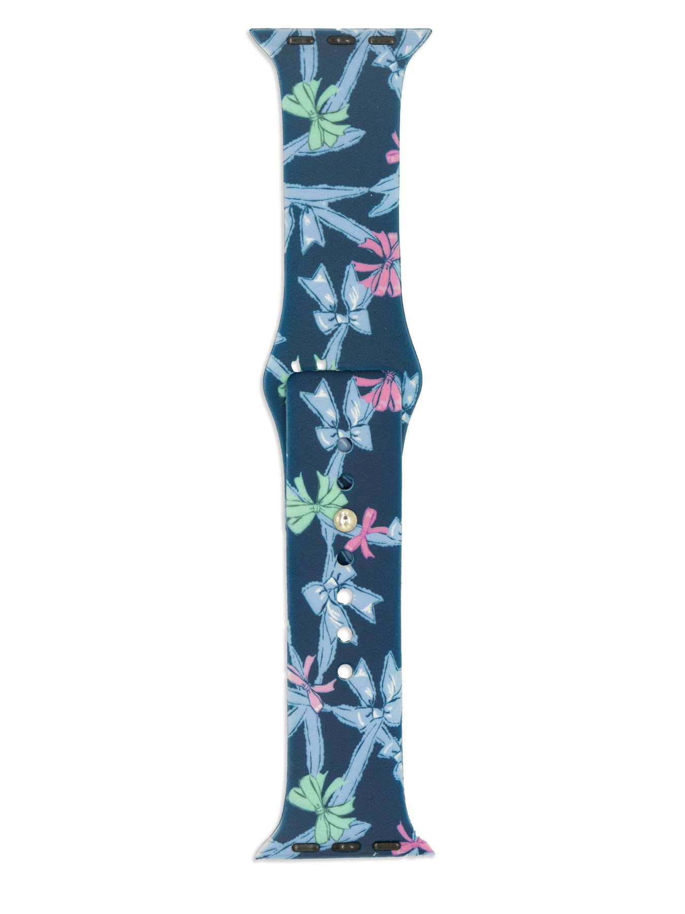 Silicone watchband with buckle closure. Compatible with 38, 40, and 41 mm Apple watches.