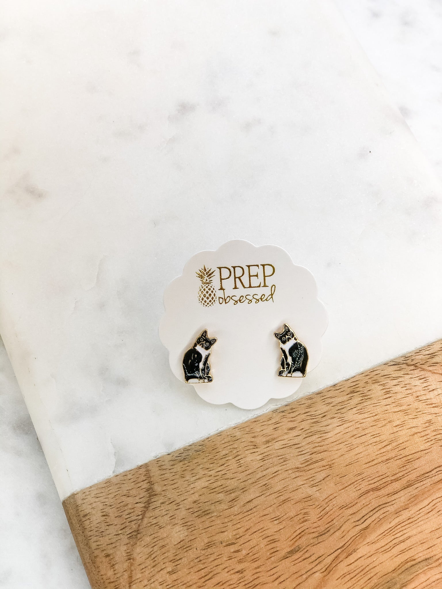 Signature Pet Enamel Studs by Prep Obsessed - Black and White Cat
