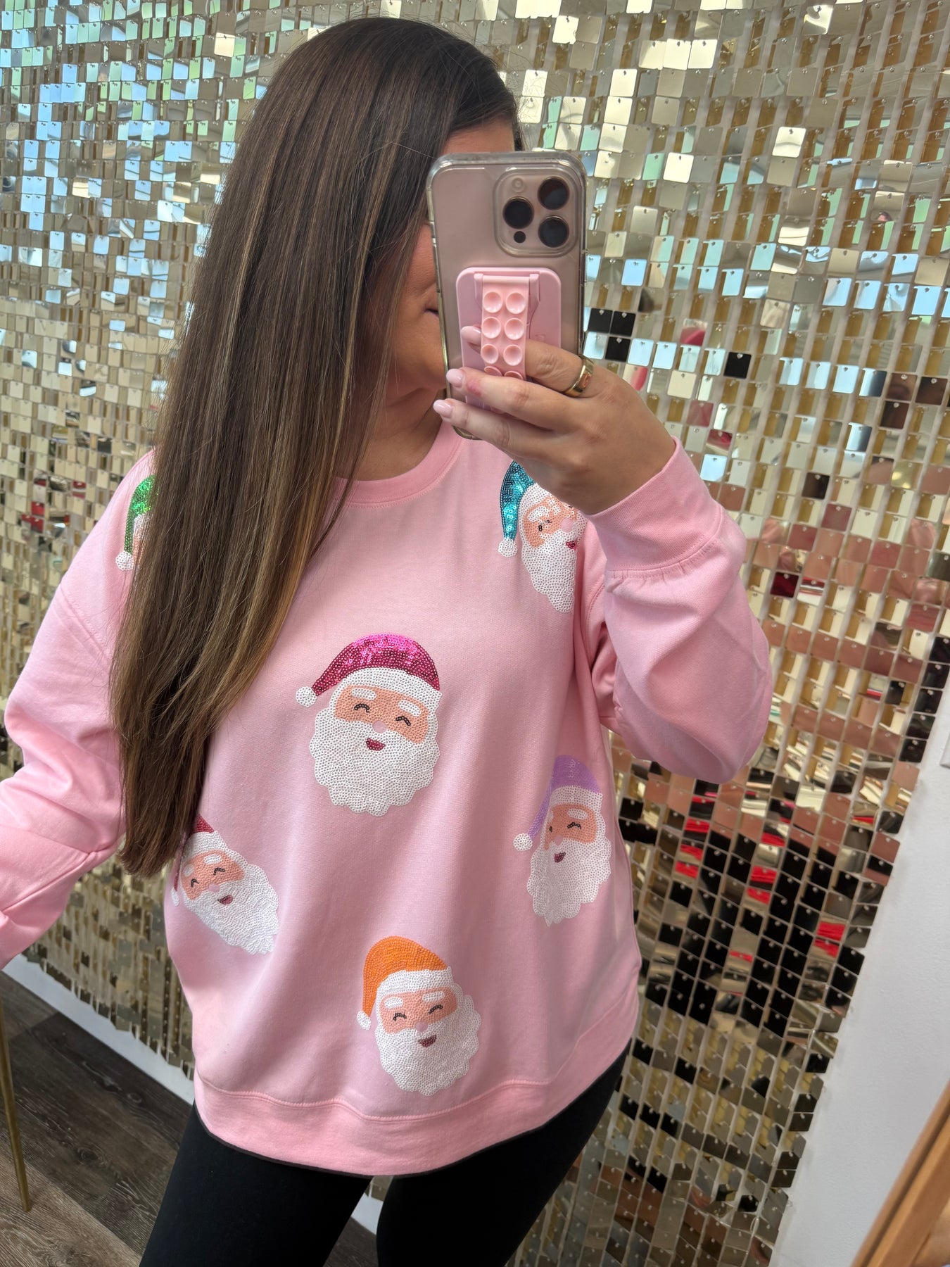 Blush Santa Sparkle Sweatshirt by Mud Pie