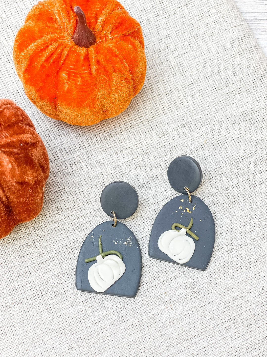 Metallic Pumpkin Clay Dangle Earrings - Gray