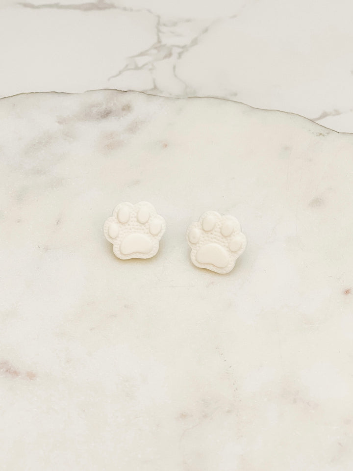 Clay Paw Print Stud Earrings - White