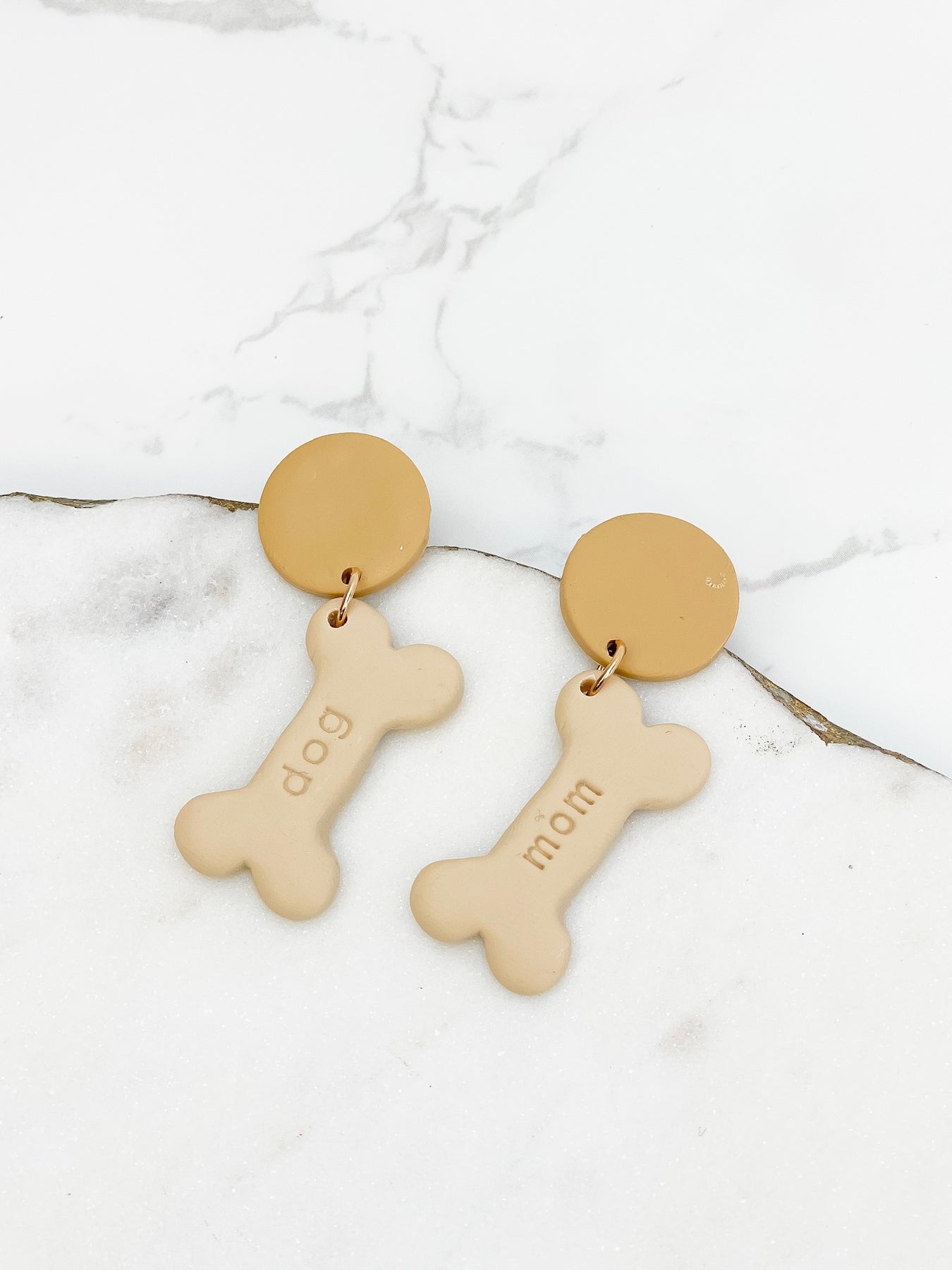 'Dog Mom' Treat Clay Dangle Earrings - Brown