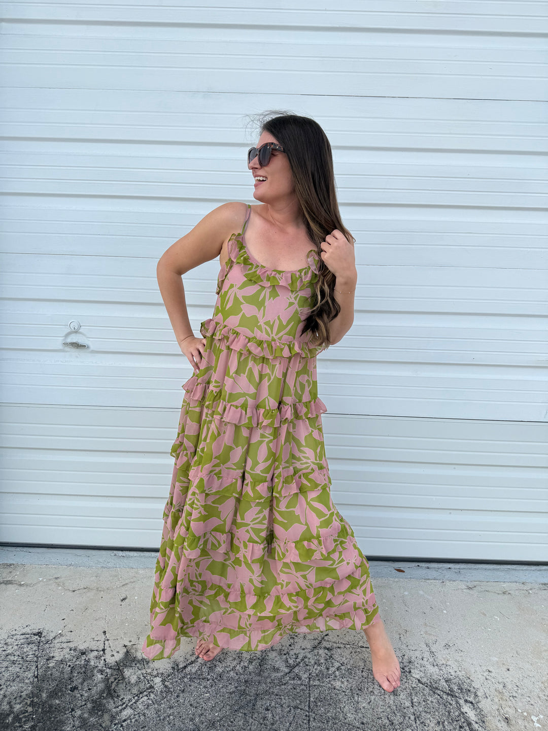 Spaghetti Strap Tiered Dress - Olive & Mauve by Sew In Love