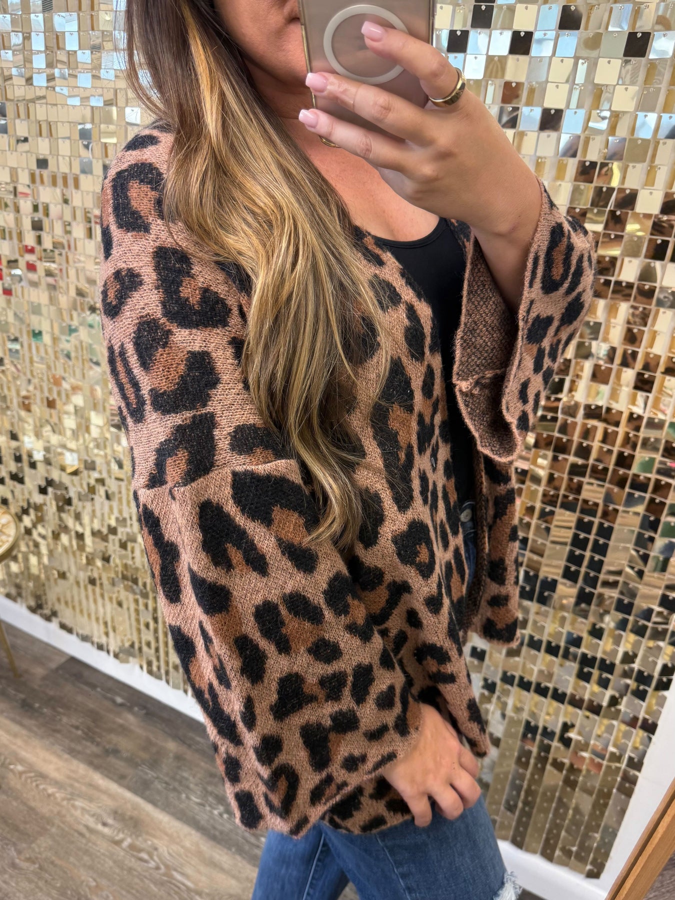 Leopard Drop Shoulder Cardigan by POL - Tan & Mocha