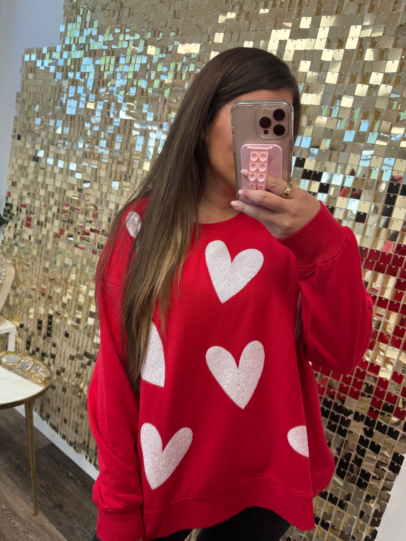 Red & Hearts Valentine's Sparkle Sweatshirt by Mud Pie