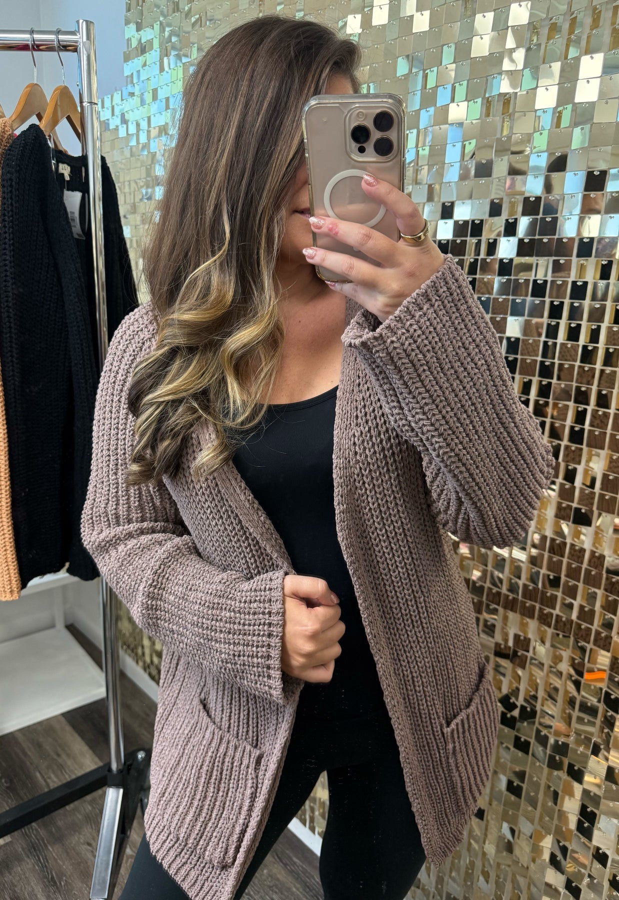 Relaxed Open Front Pocket Cardigan by POL - Mocha