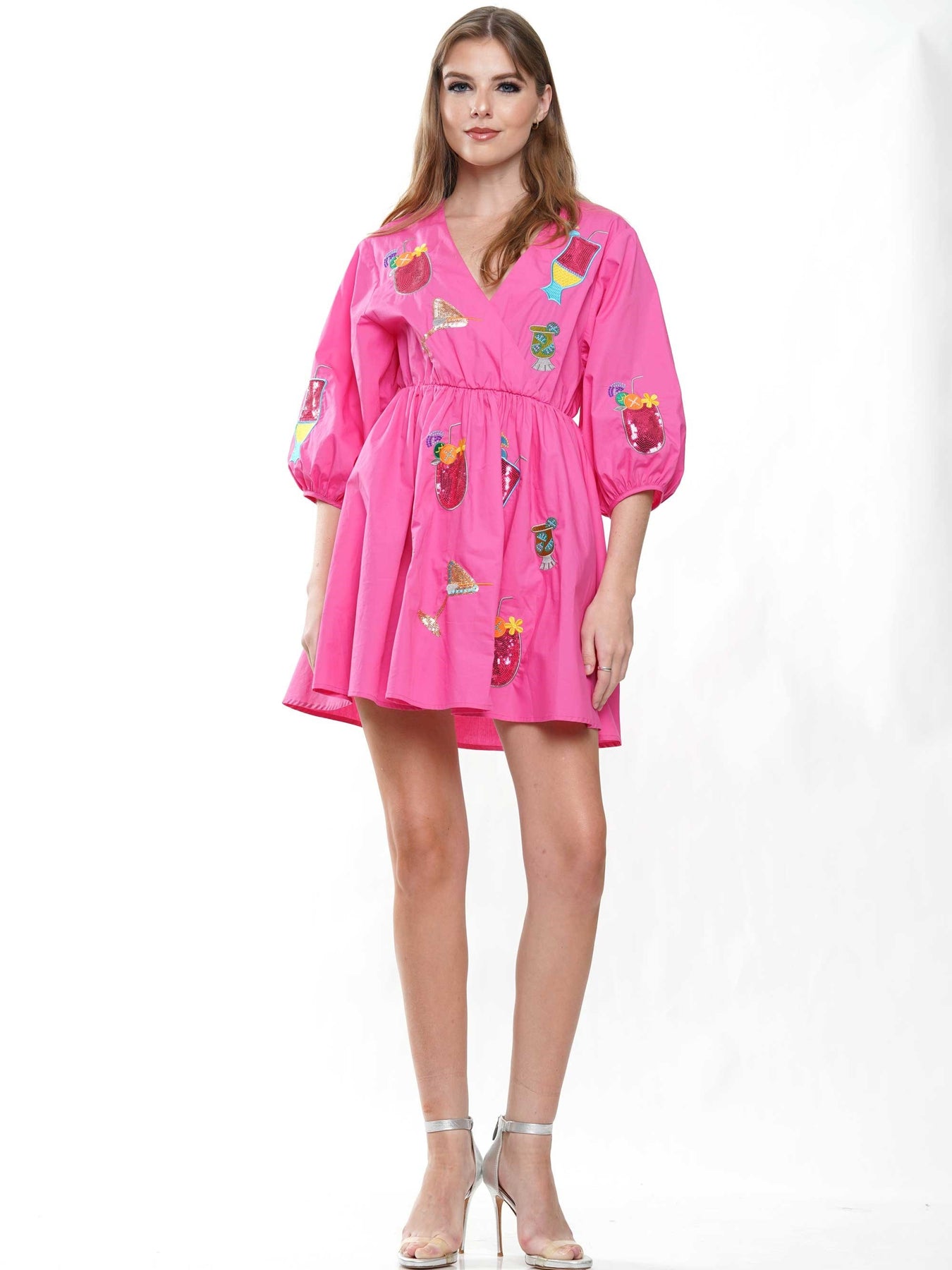 Tropical Cocktail Poplin Dress - Fuchsia