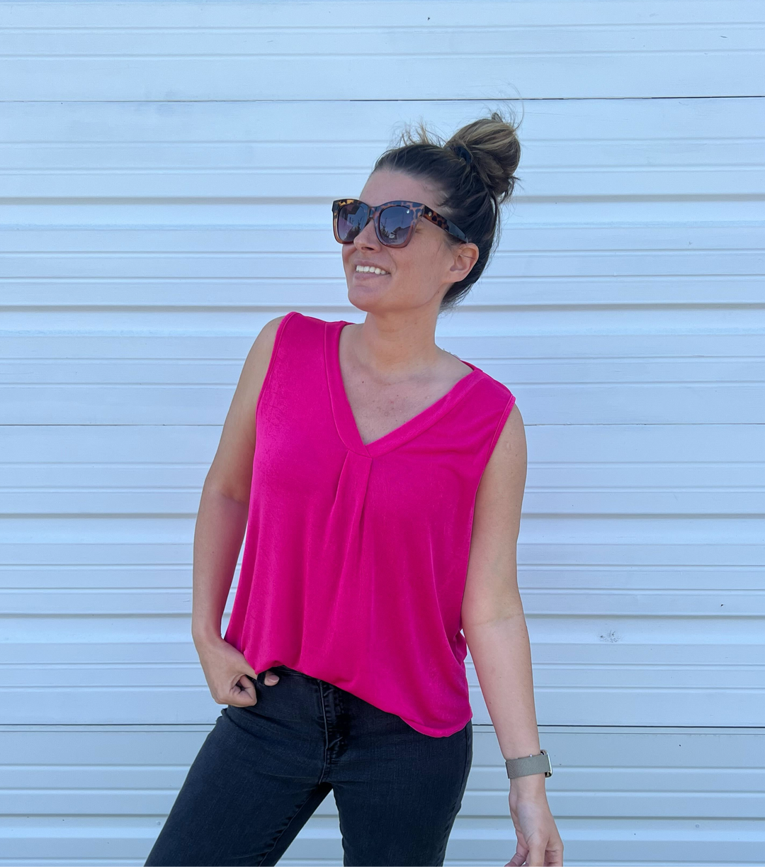 Relaxed Fit Sleeveless V-Neck Top - Pink by Sew In Love