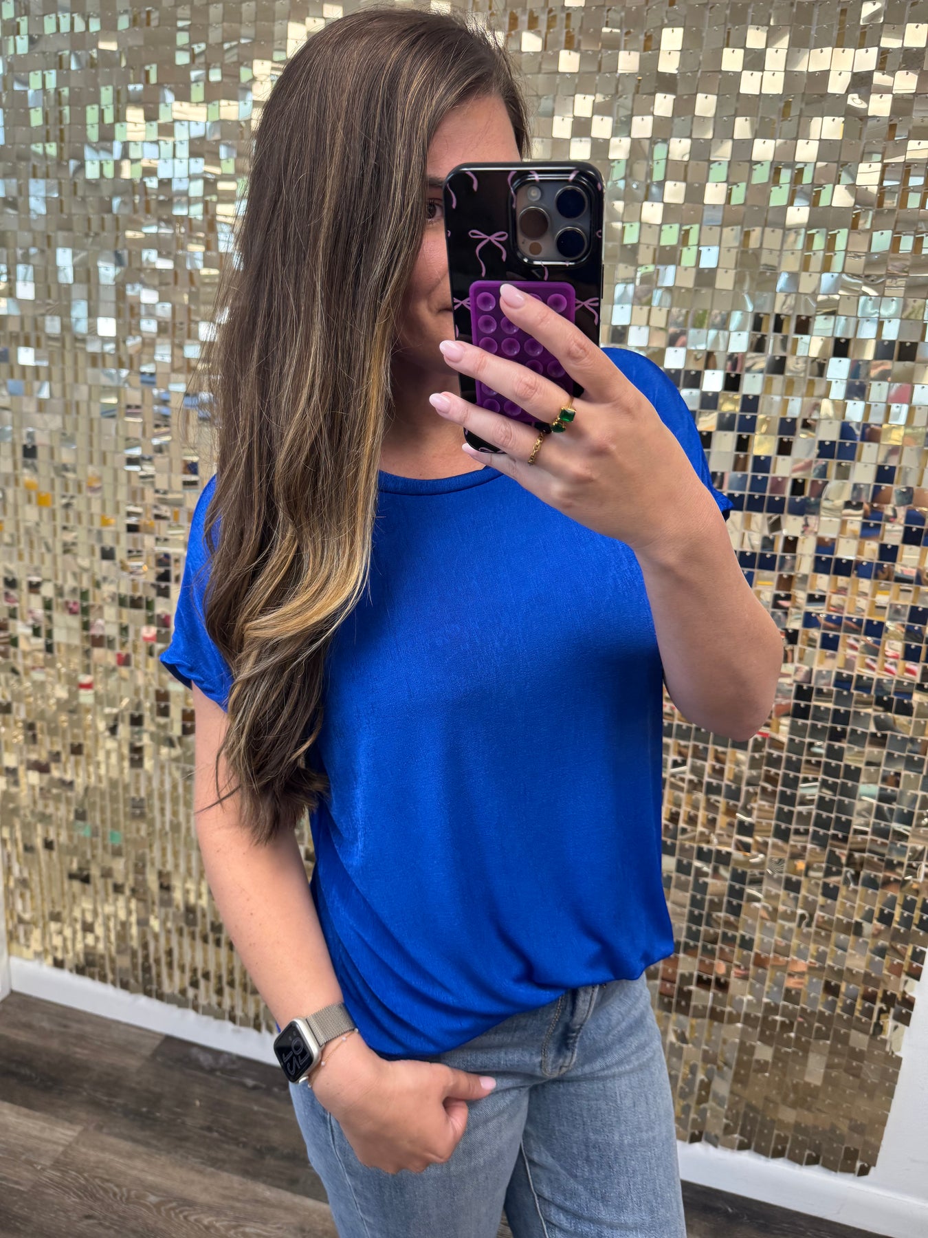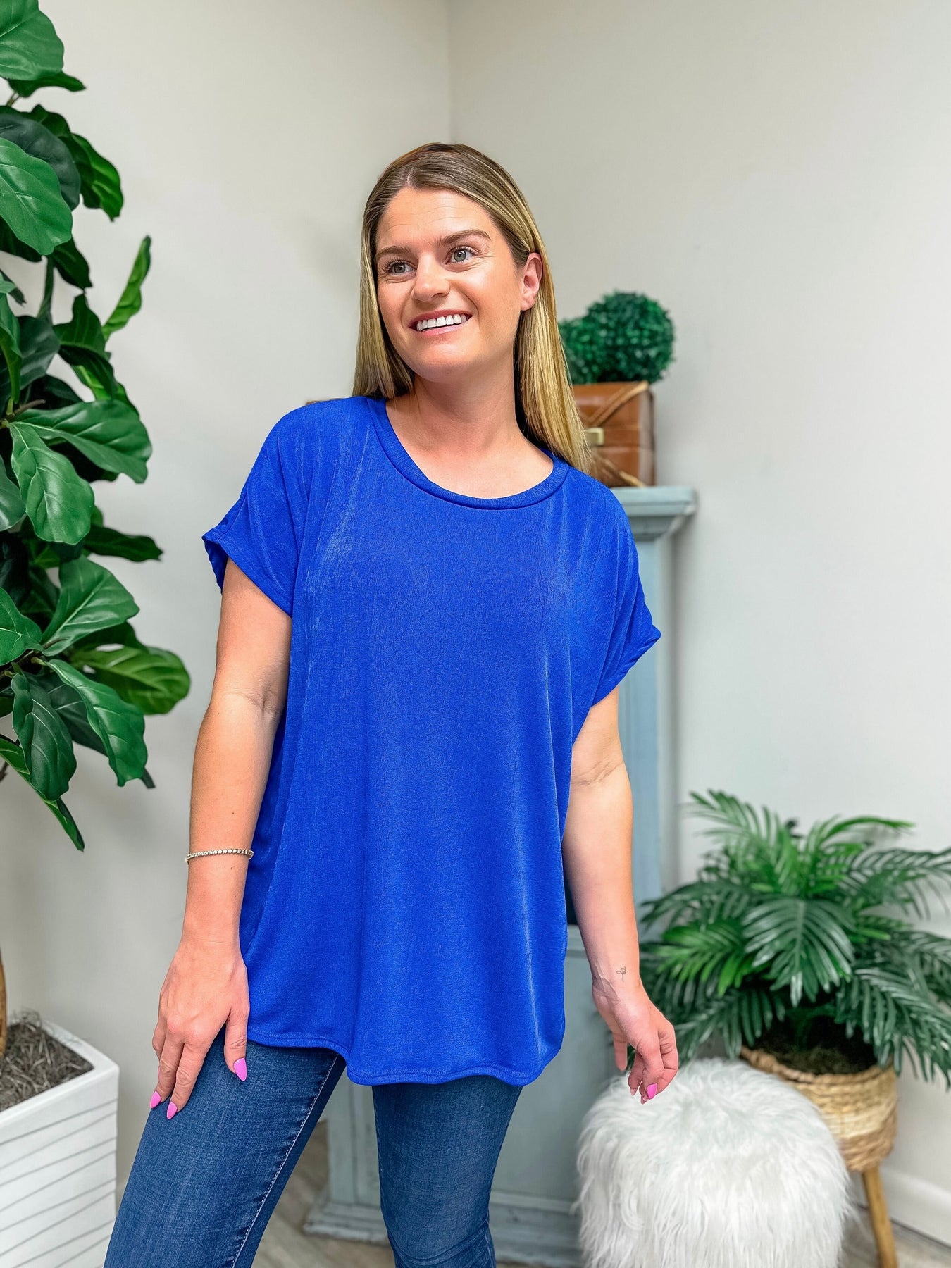 Relaxed Fit Round Neck Short Sleeve Top - Royal Blue by Sew In Love