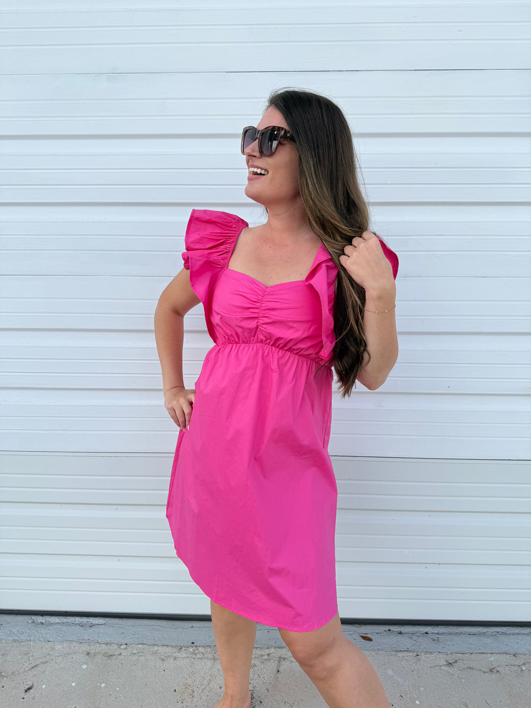 Ruffle Cap Sleeve Bow Back Dress - Fuchsia by Sew In Love