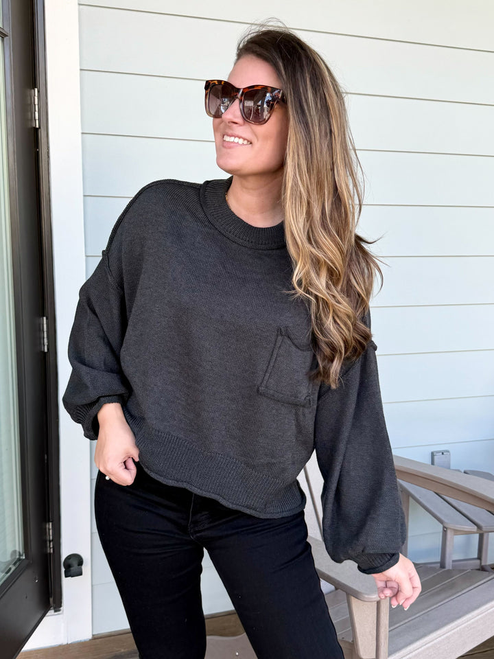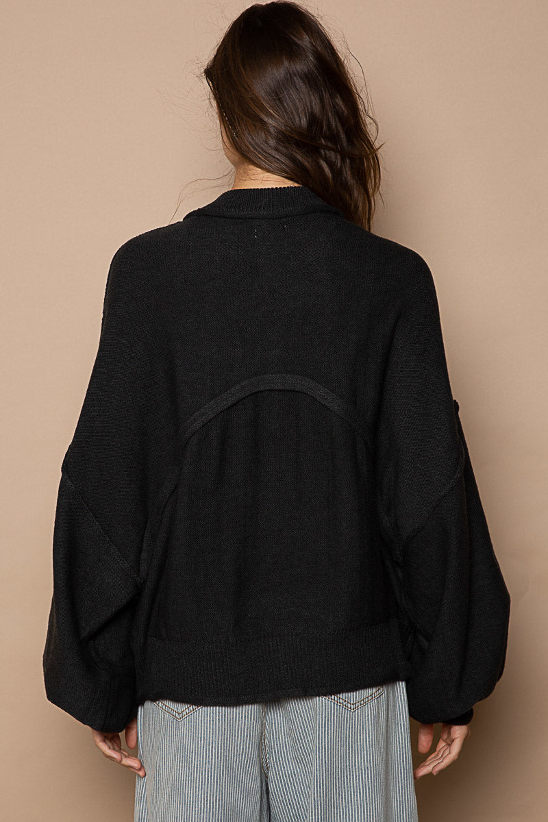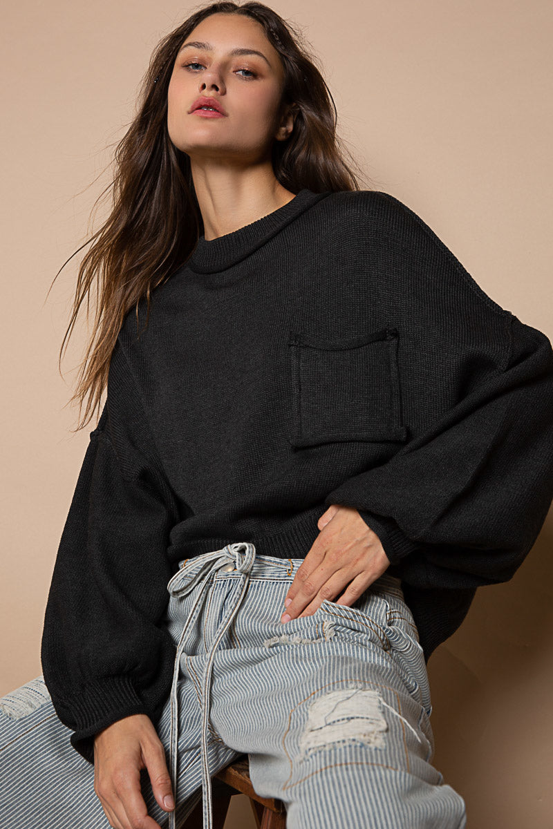 Slouchy Long Sleeve Pocket Sweater by POL - Black