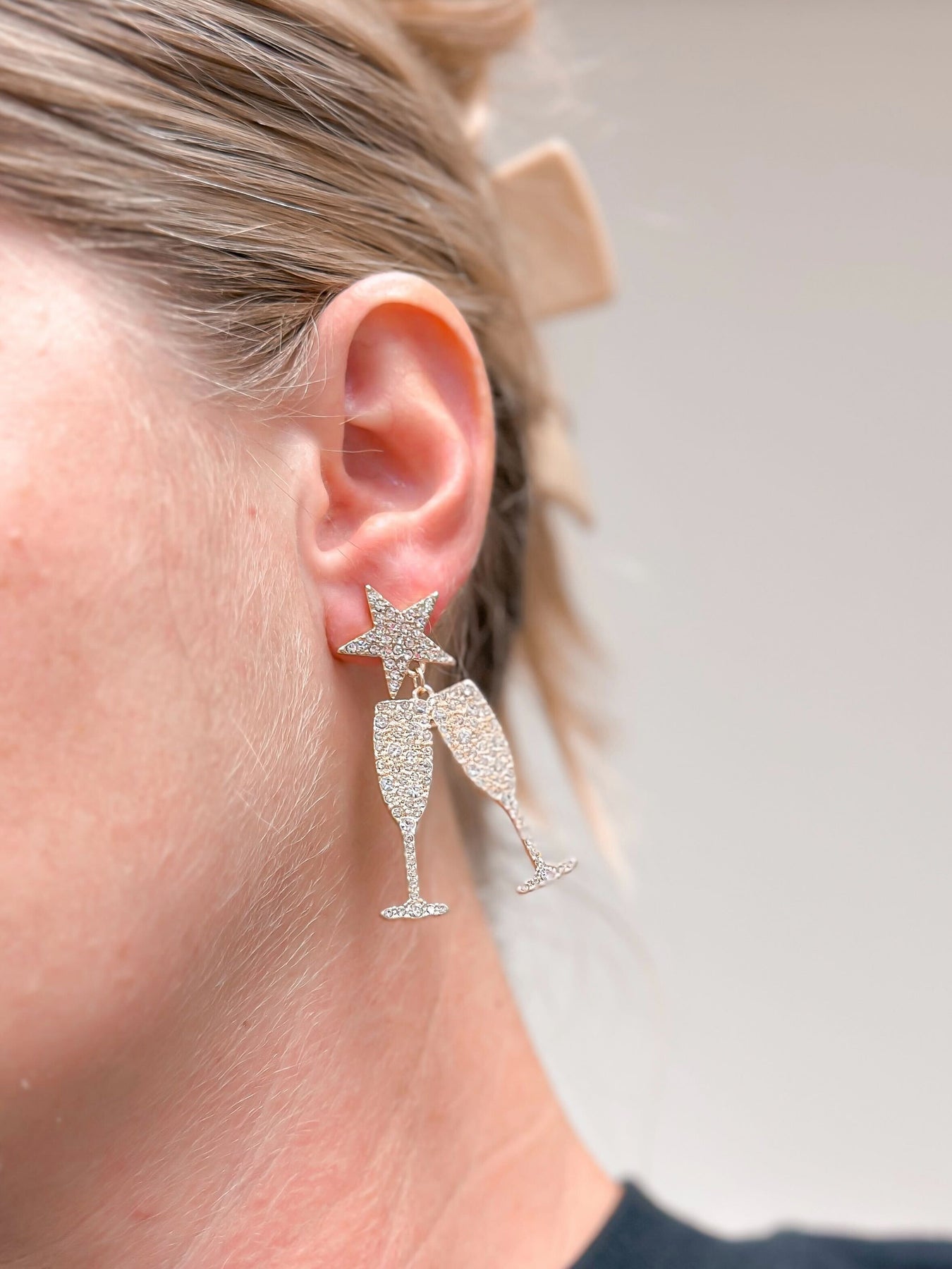 These Cheers Rhinestone Dangle Earrings are the perfect accessory for celebrating special occasions.