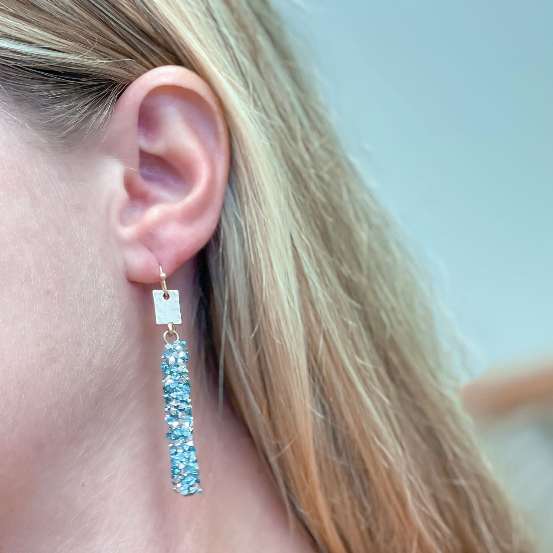 Crystal Encrusted Straight Dangle Earrings - Blue