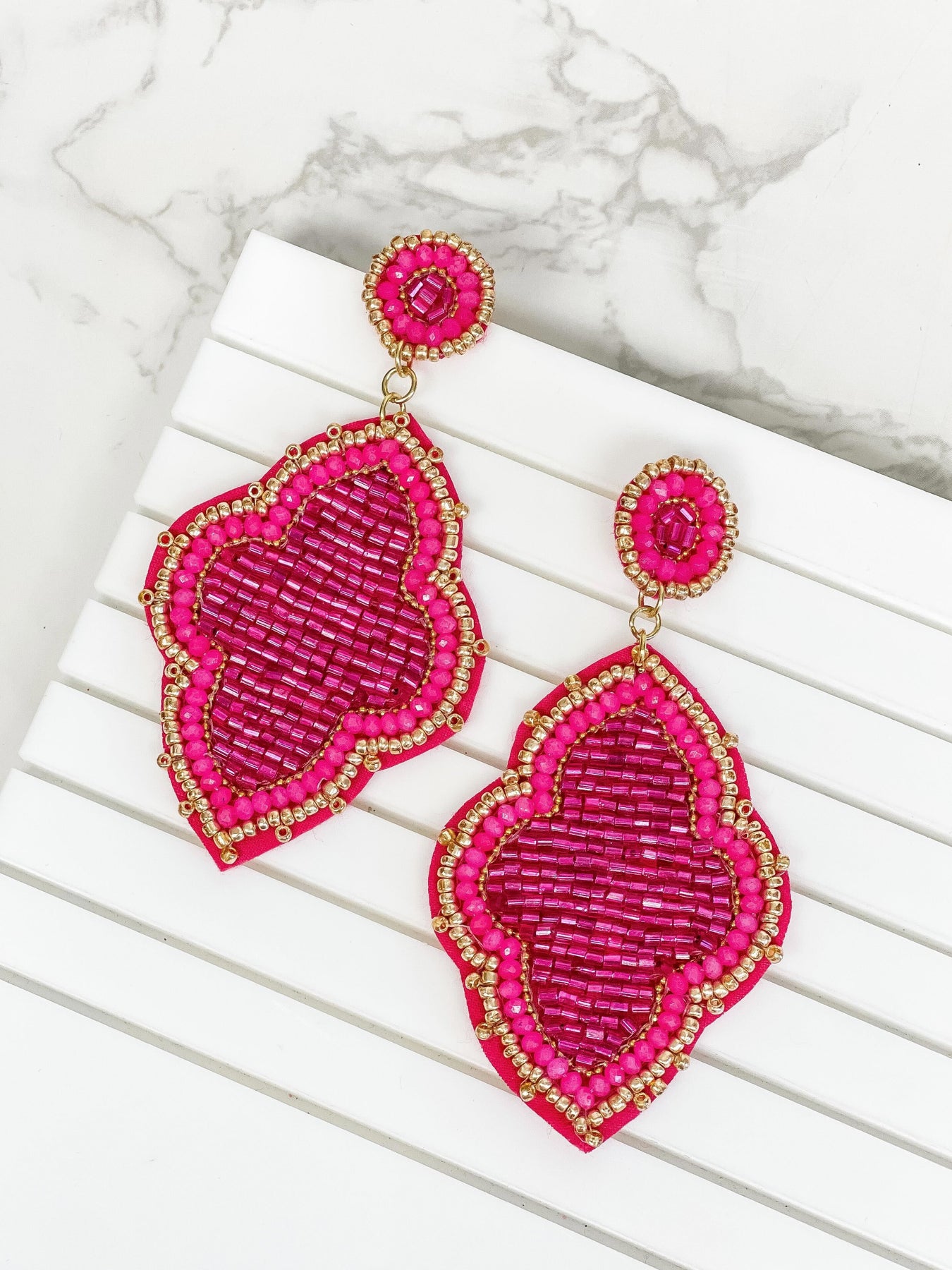 Moroccan Beaded Dangle Earrings - Fuchsia