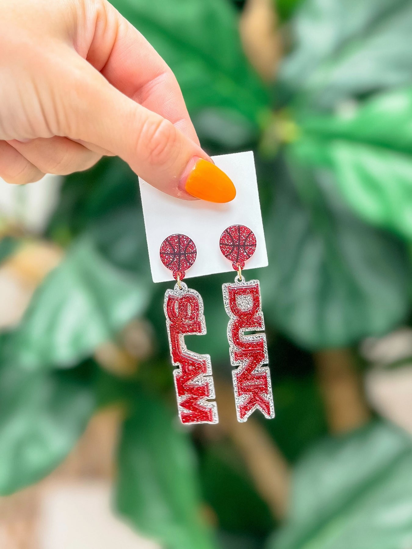 'Slam Dunk' Statement Dangle Earrings - Maroon & Silver Glitter