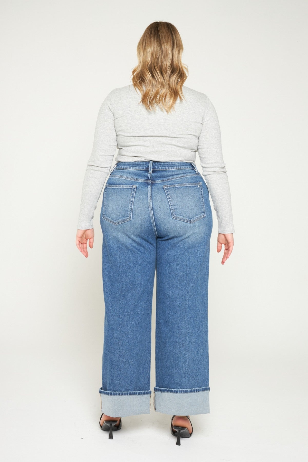 Every Bleu Super High Rise Wide Cuffed Leg Jeans By Mica Denim