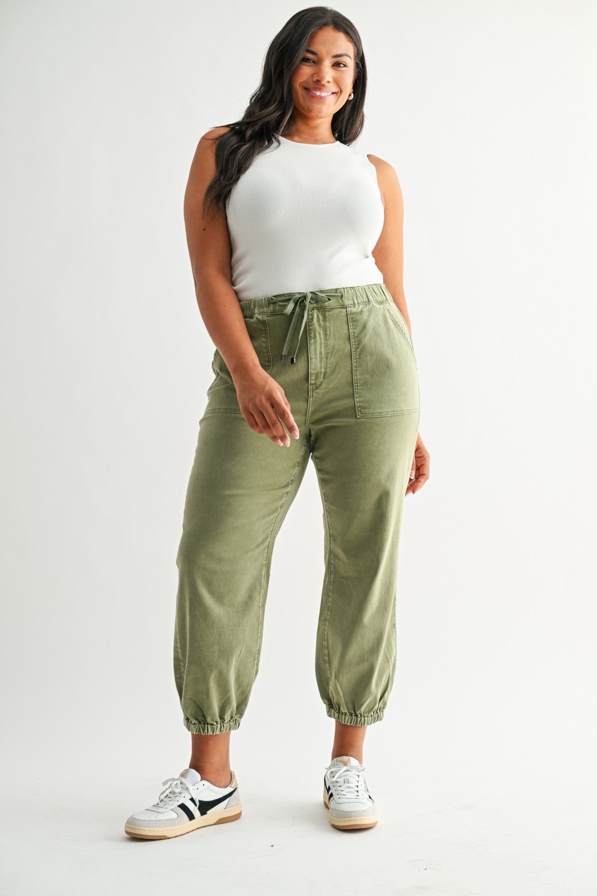 Olive High Rise Cropped Joggers By Mica Denim