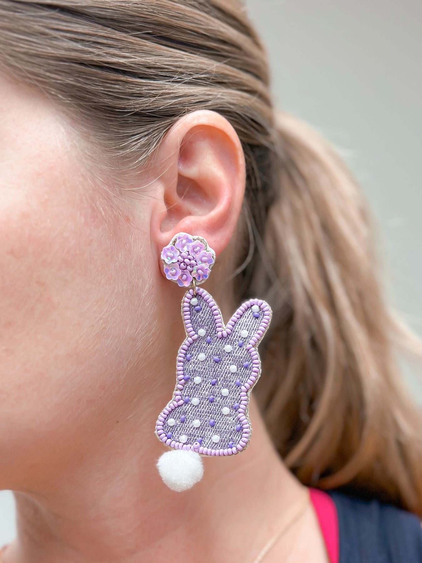 Easter Bunny Beaded Dangle Earrings - Purple
