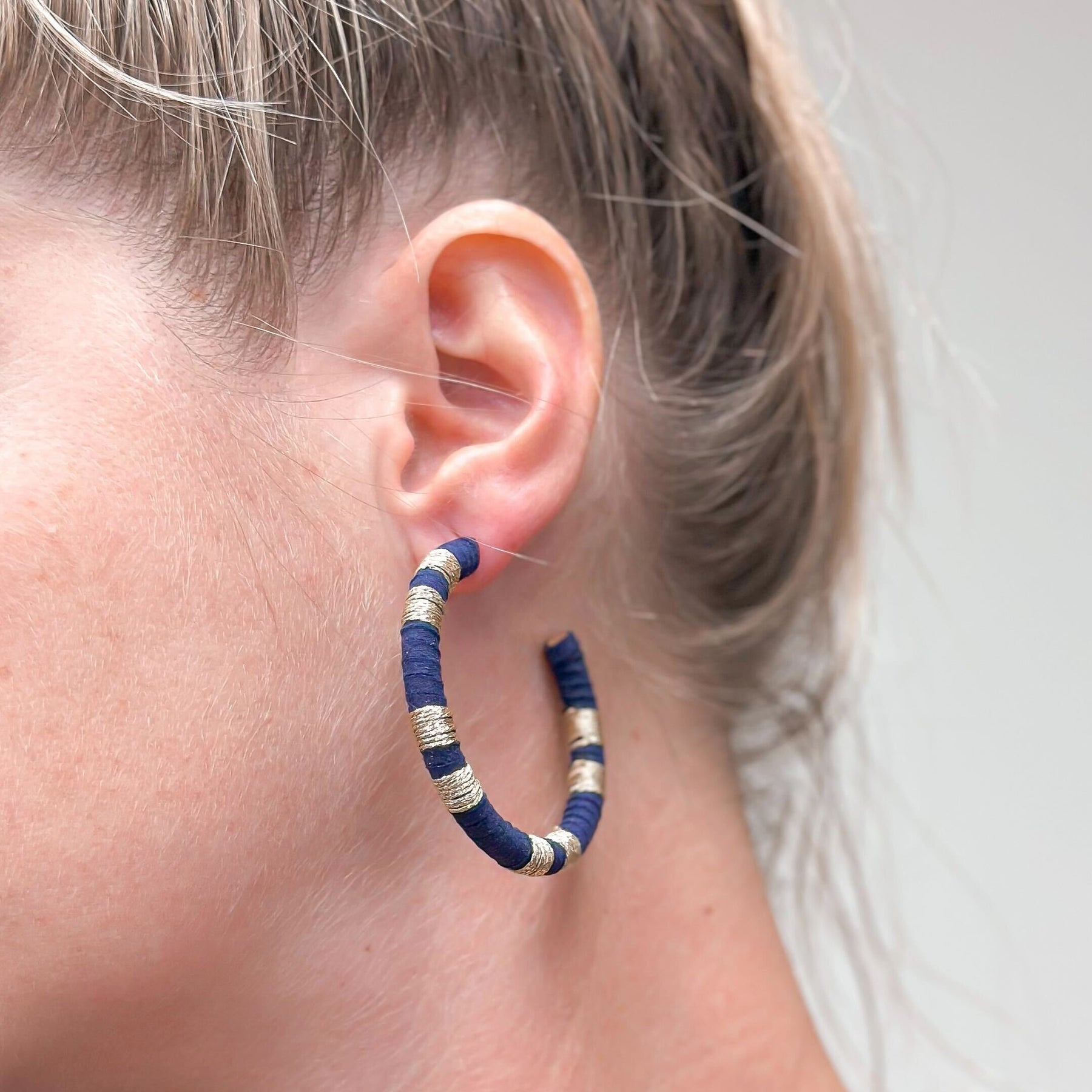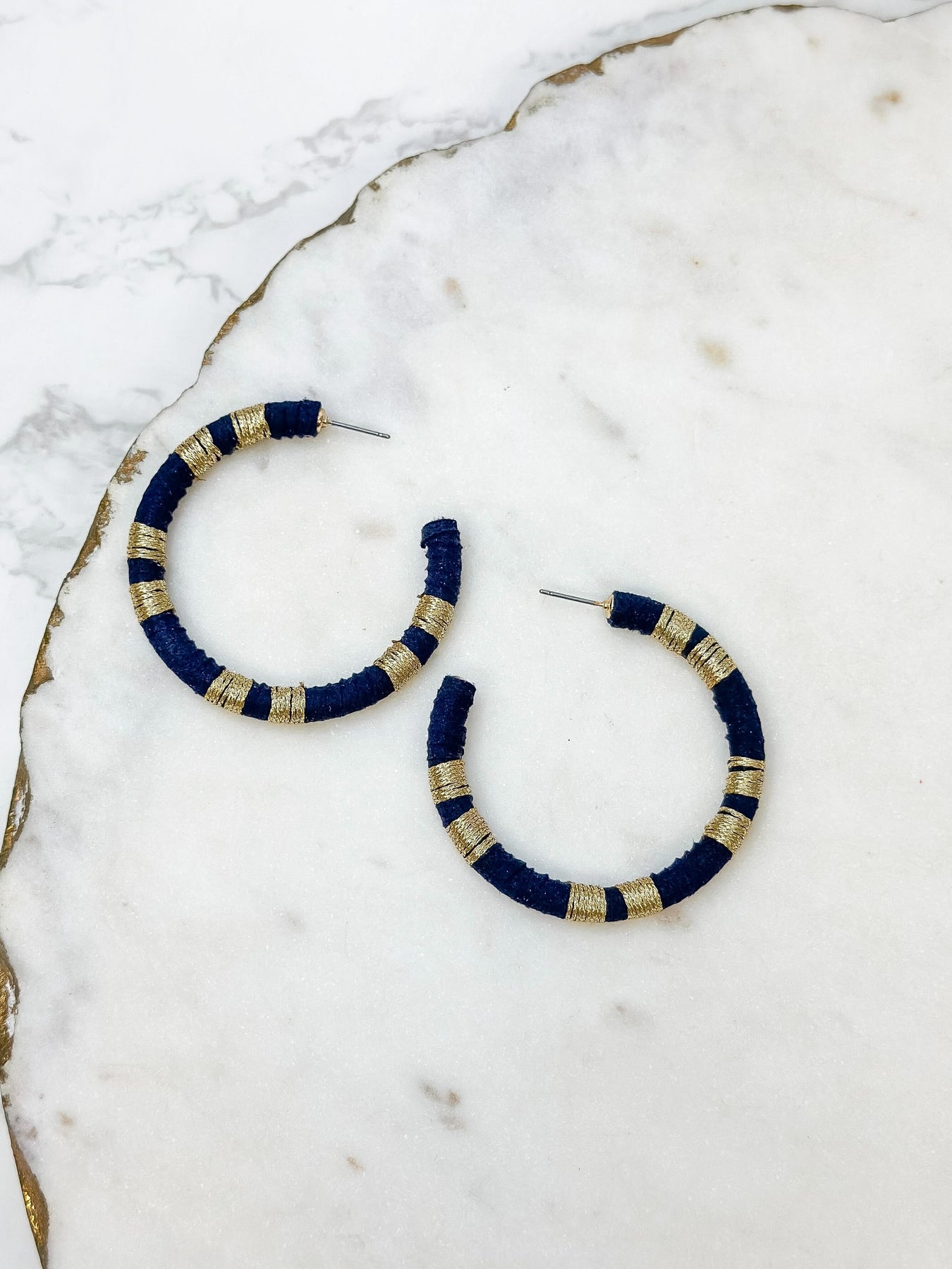 Metallic Suede Hoop Earrings - Dark Navy Blue