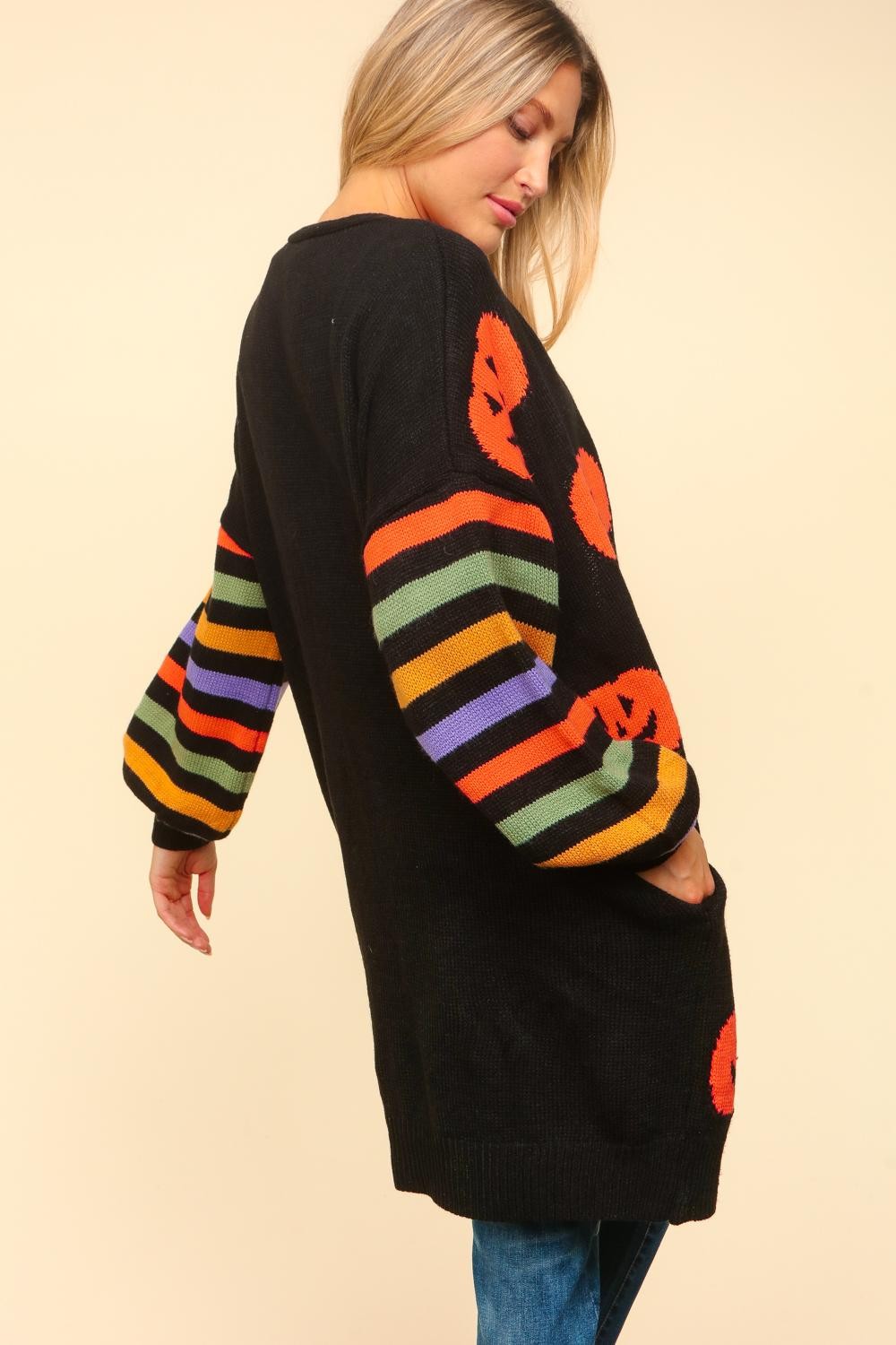 Stripe Sleeve Pumpkin Jacquard Cardigan
