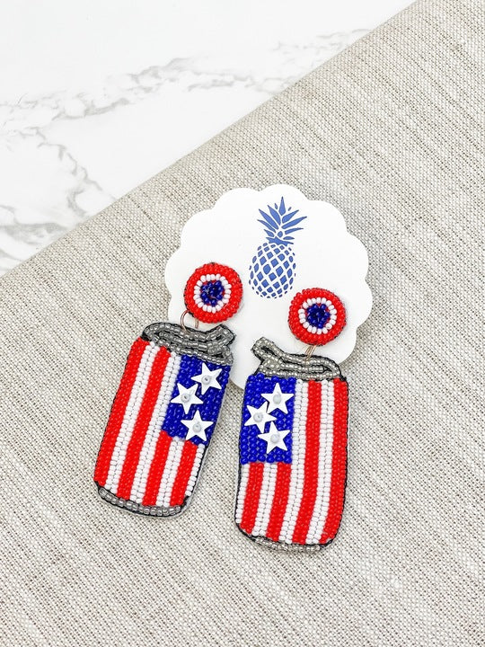 Red, White, & Blue Beer Beaded Dangle Earrings