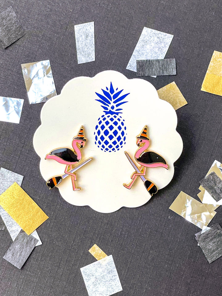 Halloween Flamingo Signature Enamel Studs by Prep Obsessed - Witch