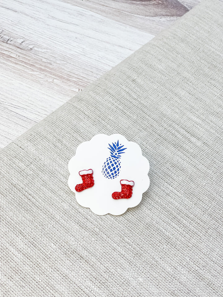 Pave Red Stocking Stud Earrings
