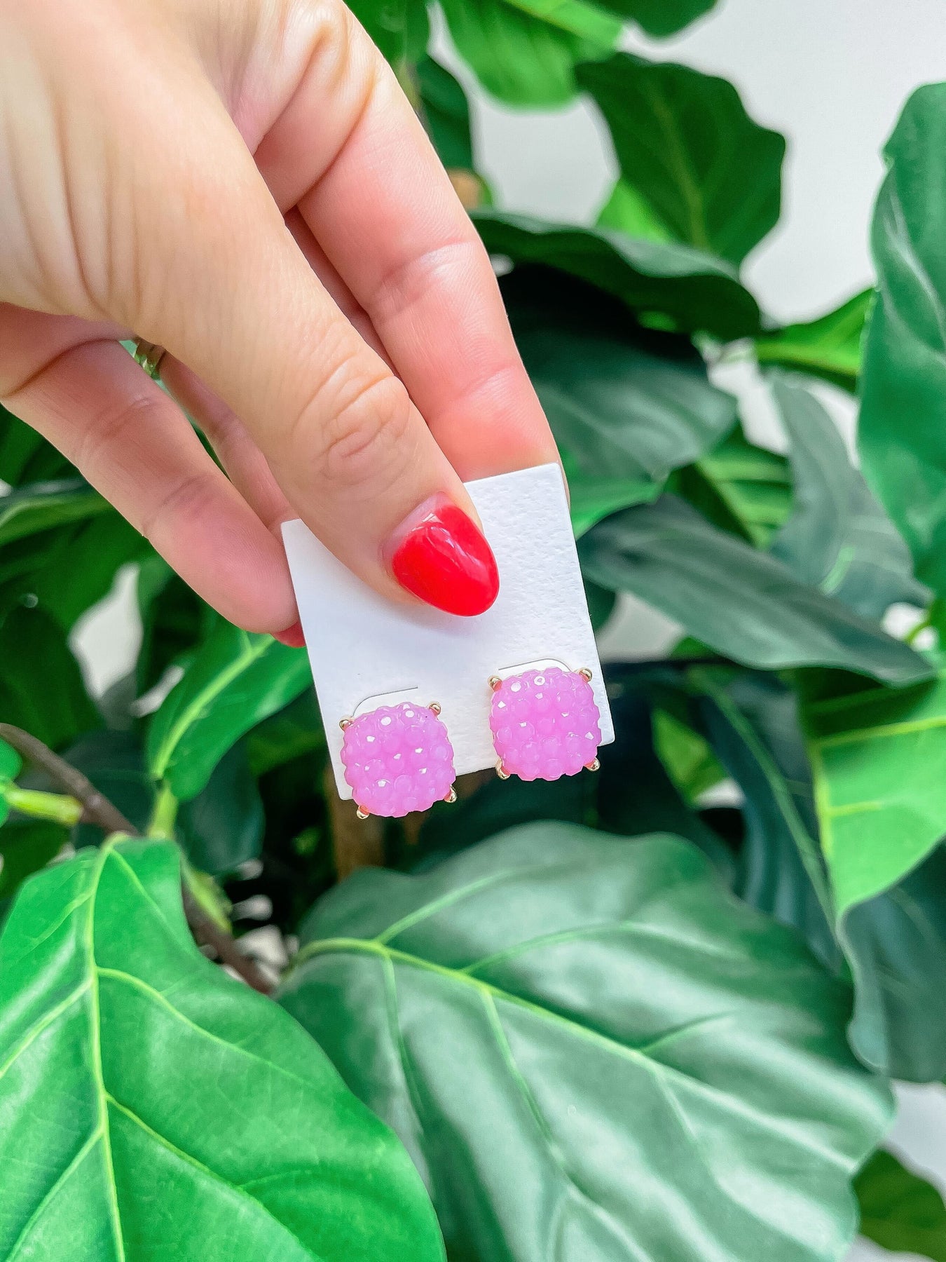 Cushion Embossed Stud Earrings - Purple