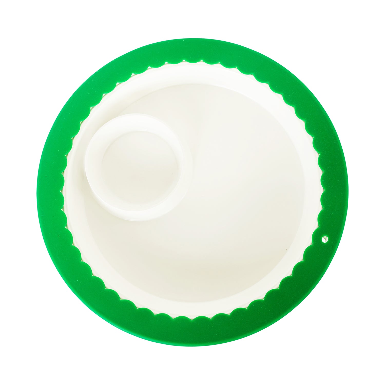 the nine colorful bands add a pop of color to the melamine chip & dip platter and are great to mix & match with your favorite minis!