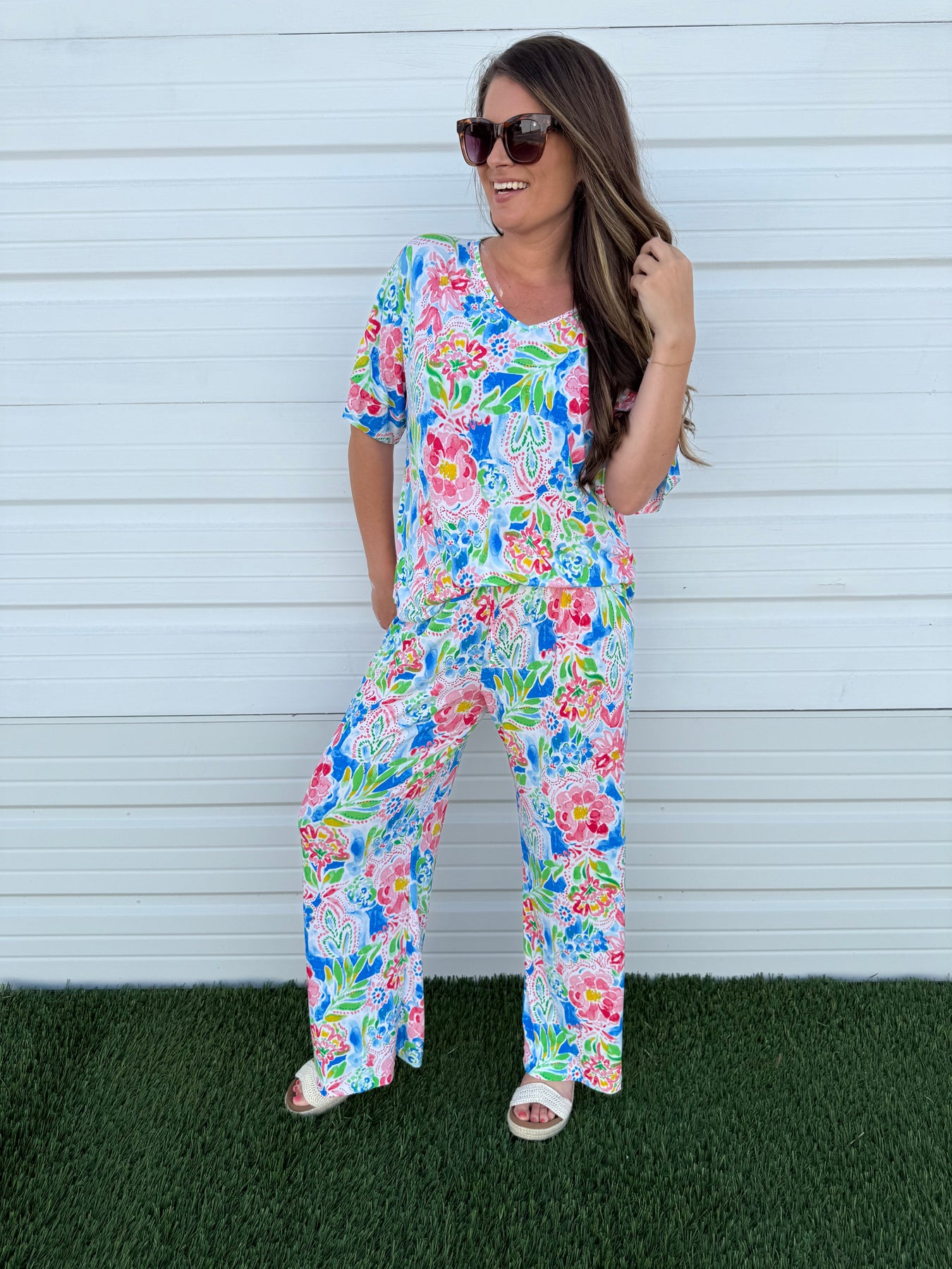 This stunning, vibrant printed set is everything this spring/summer! Featuring a loose-fit and an elastic waistline, it offers all-day comfort without compromising on style. A travel-friendly versatile piece that's wrinkle-free for wherever your adventure might take you!