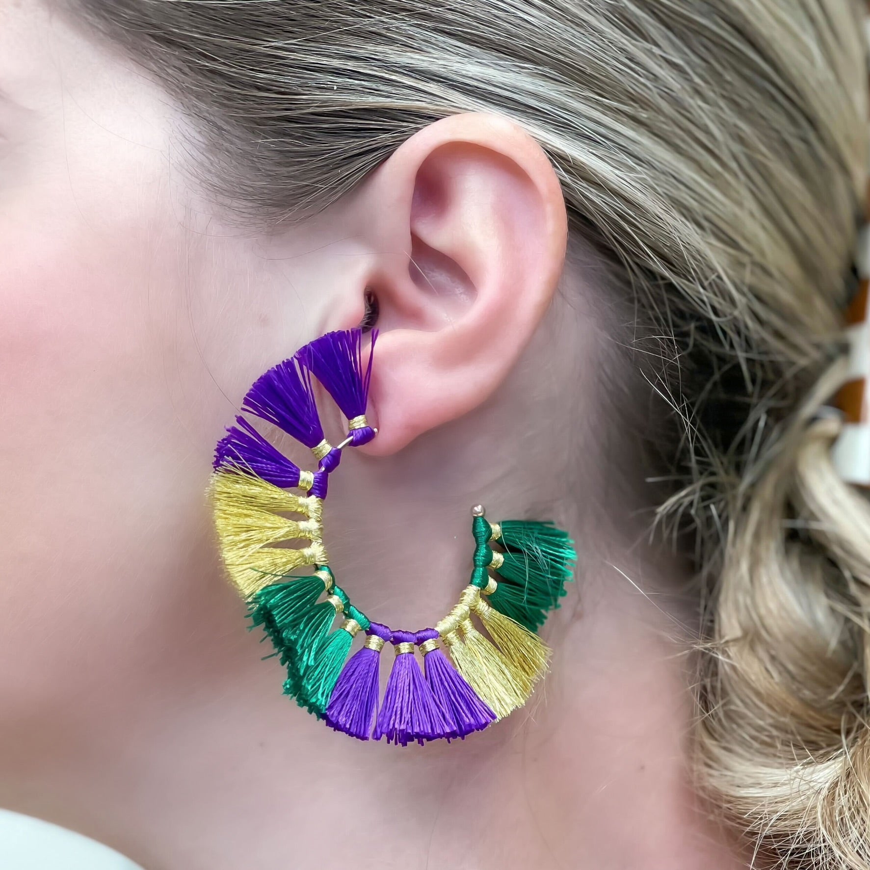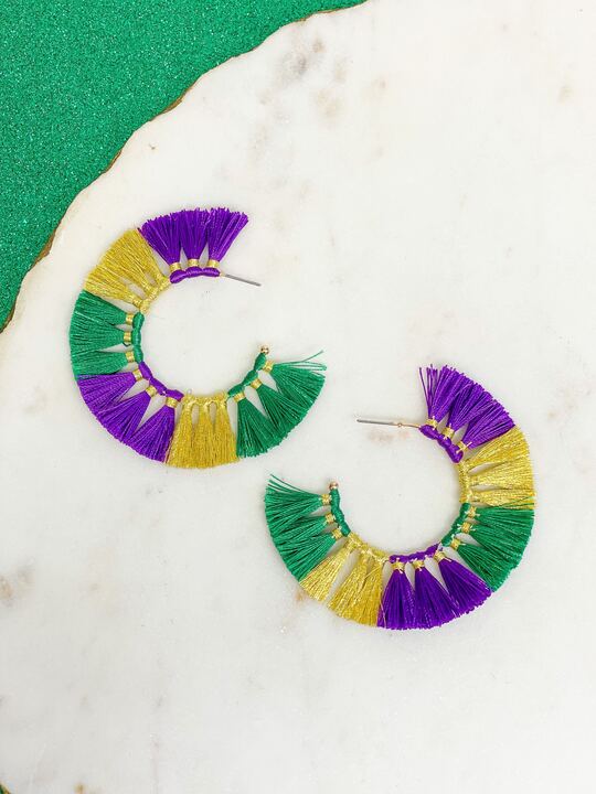 Mardi Gras Fringe Hoop Earrings