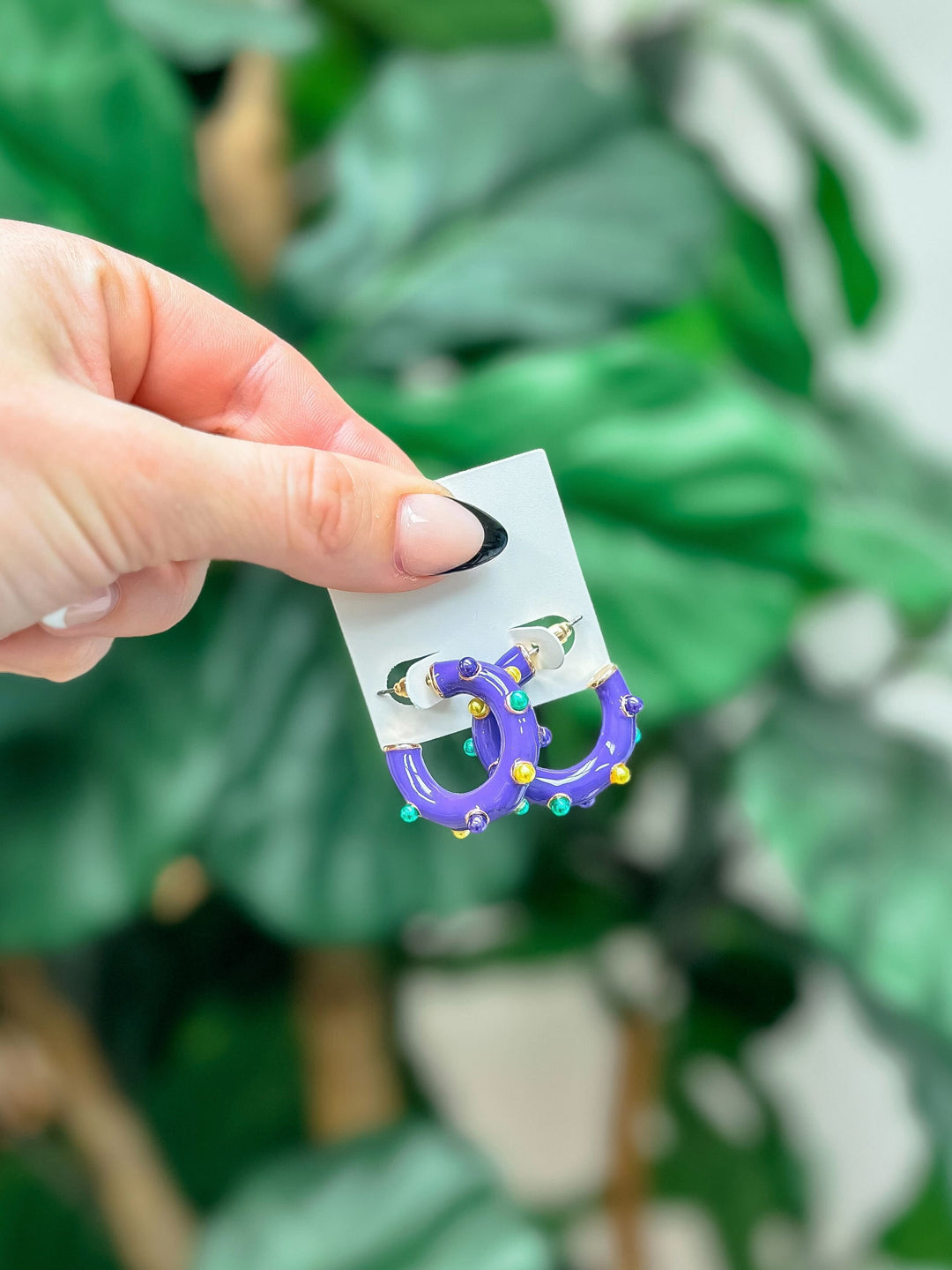 Mardi Gras Dotted Enamel Hoop Earrings - Purple