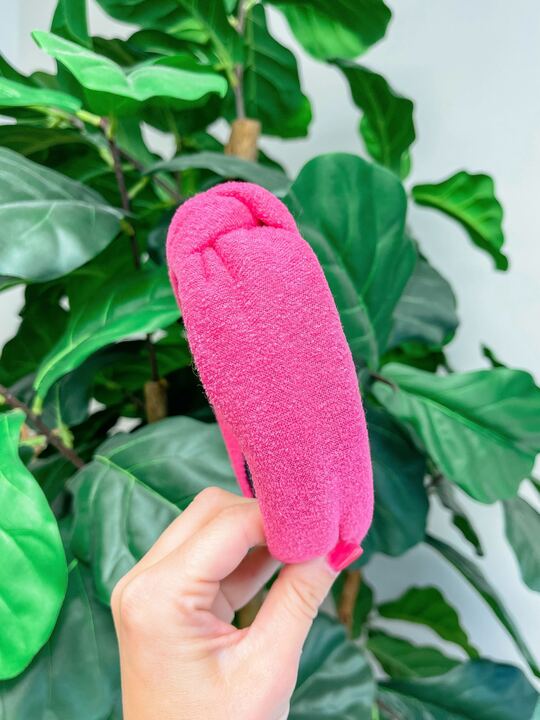 Neon Terry Knotted Headband - Pink