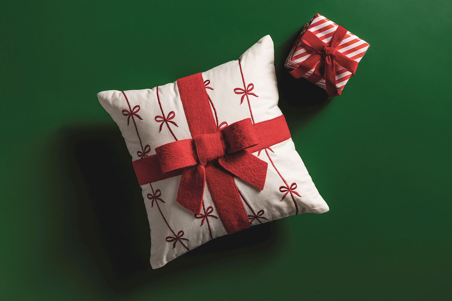 Christmas Bow Felted Wool Pillow by Mud Pie